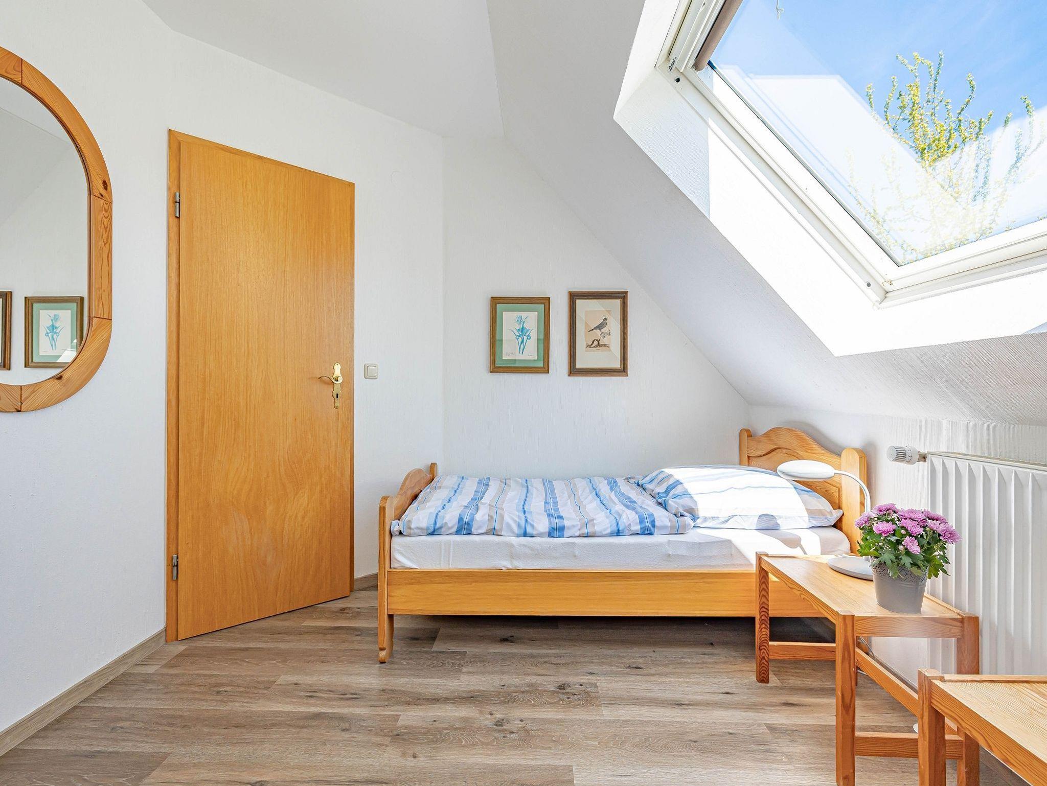 Die Ferienwohnung Schwalbe in der 1. Etage ist für 4 - 6 Personen und ca. 65 qm groß, im Maisonette-Stil mit einem Balkon der zum Verweilen einlädt.