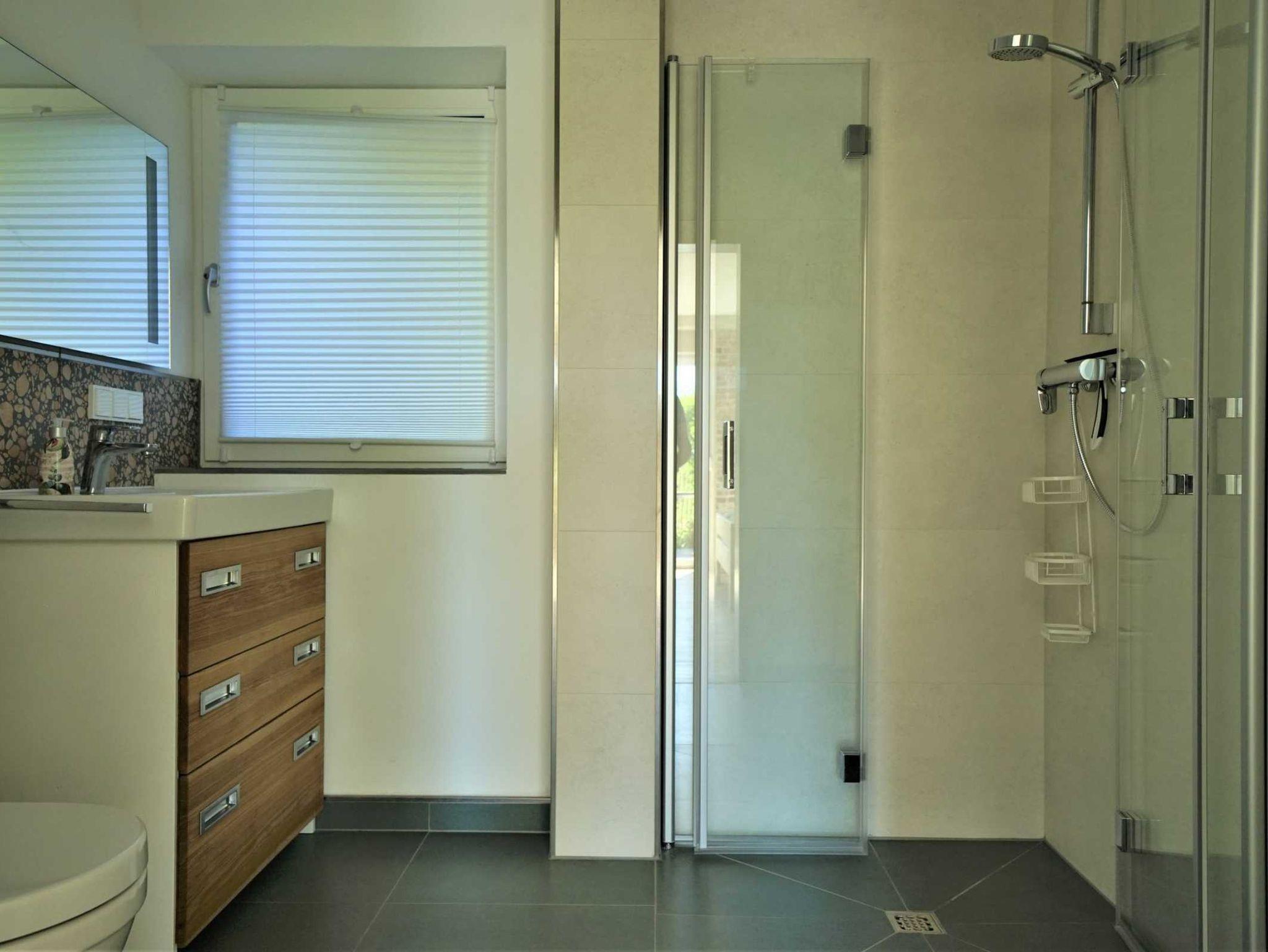 • an das Schlafzimmer angrenzendes Duschbad mit bodengleicher Dusche; Handtücher bei der Gastgeberin zu buchbar