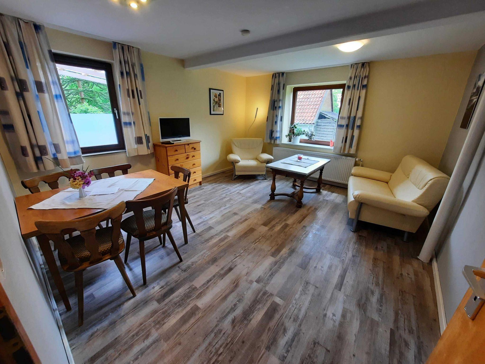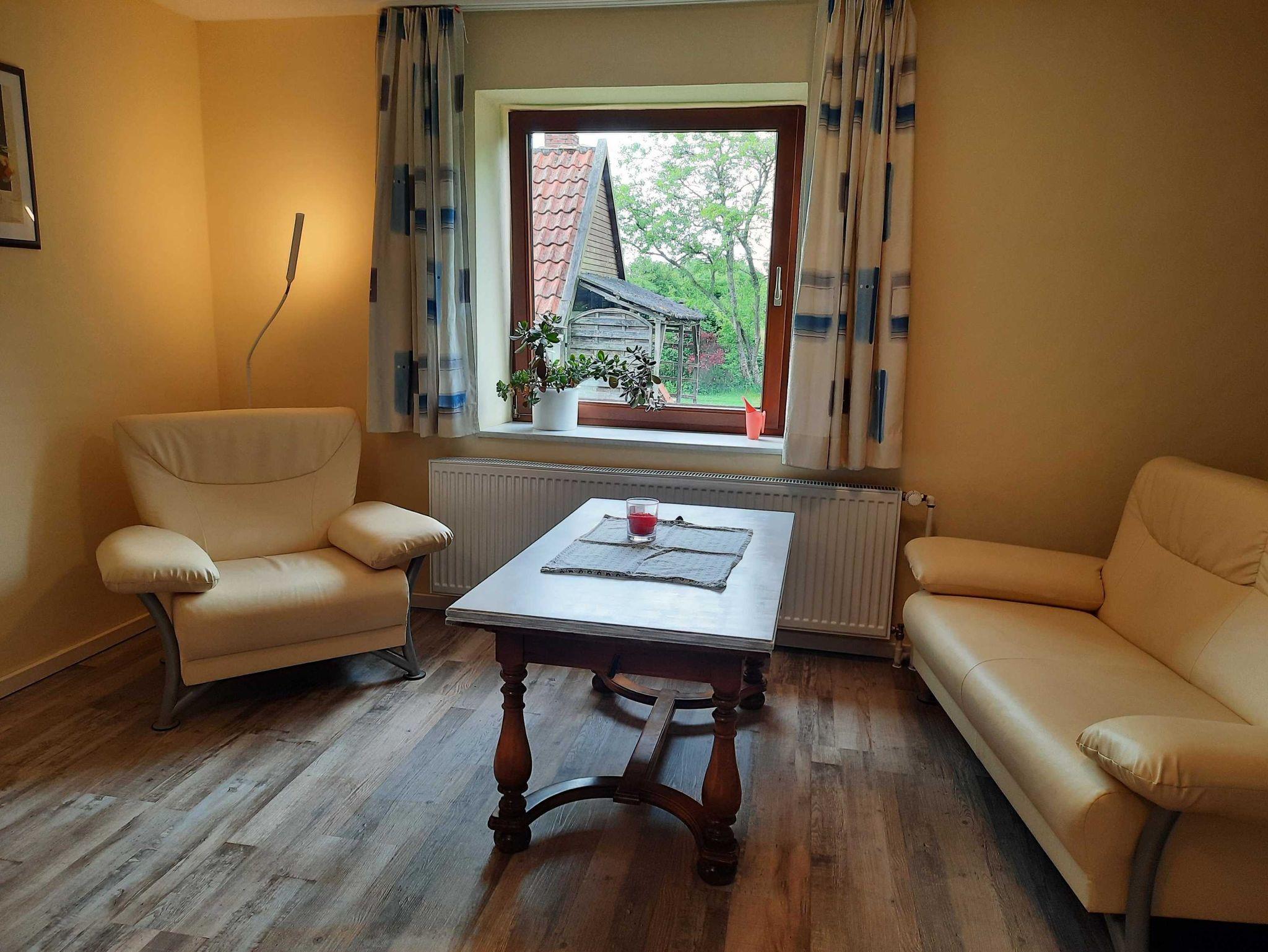 Gemütlich eingerichtet erwartet im Erdgeschoss die Ferienwohnung 5 bis zu 5 Gäste. Fußböden überwiegend mit Teppich sorgen für ein wohliges Ambiente.