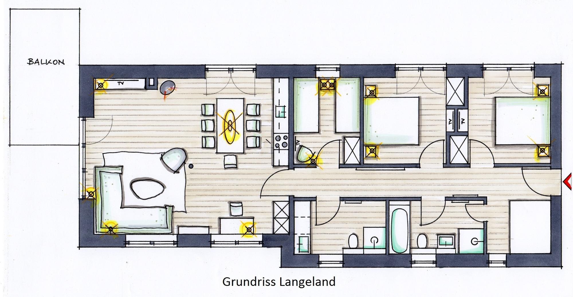Die Ferienwohnung "Langeland" bietet die perfekten Räumlichkeiten, um mit der ganzen Familie oder Freunden ein paar erholsame Tage zu verbringen. Die 100 m² große, lichtdurchflutete Wohnung befindet sich im Obergeschoss und bietet einen FANTASTISCHEN Blick auf die Ostsee.