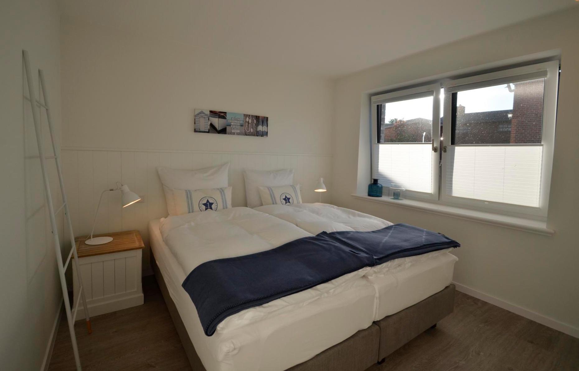 Dieses Schlafzimmer begeistert mit seiner weißen Vertäfelung und schafft so einen gemütlichen maritimen Eindruck, der durch die passenden Accessoires in den Farben Weiß und Blau ergänzt wird. Das komfortable BOXSPRINGBETT (180x200cm) und DAUNENDECKEN in Übergröße (155x220cm) garantieren einen erholsamen Schlaf.