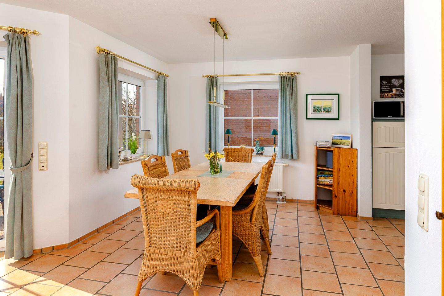 Hier steht Ihnen ein Fernseher zur Verfügung und hier finden Sie auch den schönen Essbereich.