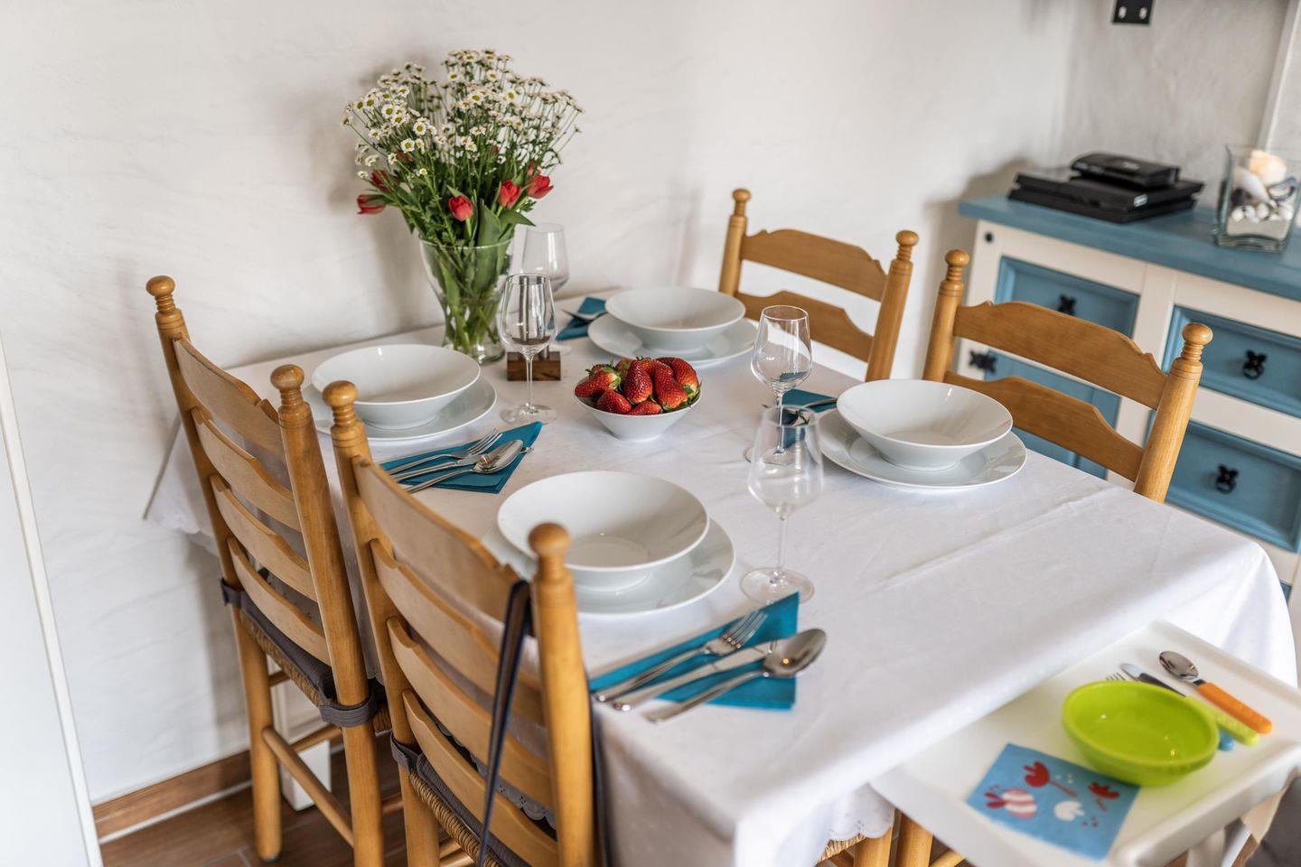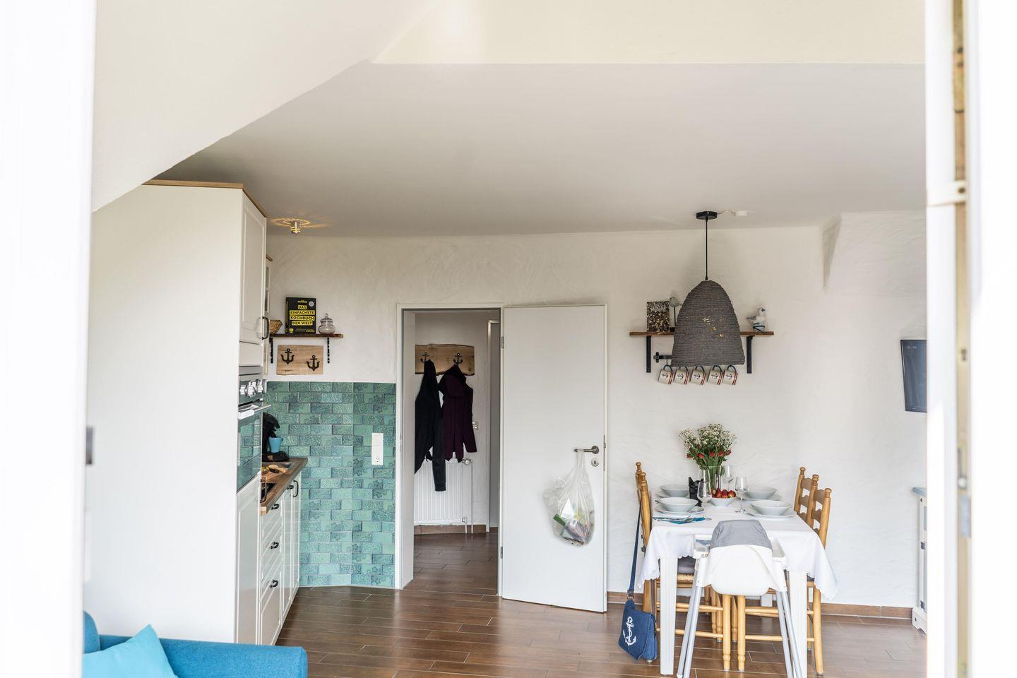 Die Ferienwohnung bietet Dir eine offene Wohnküche, die gemütlich eingerichtet ist, sowie eine voll ausgestattete, moderne Küche.