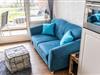 Vom Wohnzimmer aus hast Du außerdem Zugang zum Balkon mit Meerblick.
