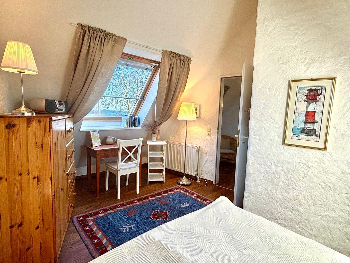 Im Dachgeschoss befindet sich eine Leseecke, der zweite Schlafraum ist mit einem Doppelbett (2x 80x200cm) und einem weiteren Einzelbett (90x200cm) ausgestattet.