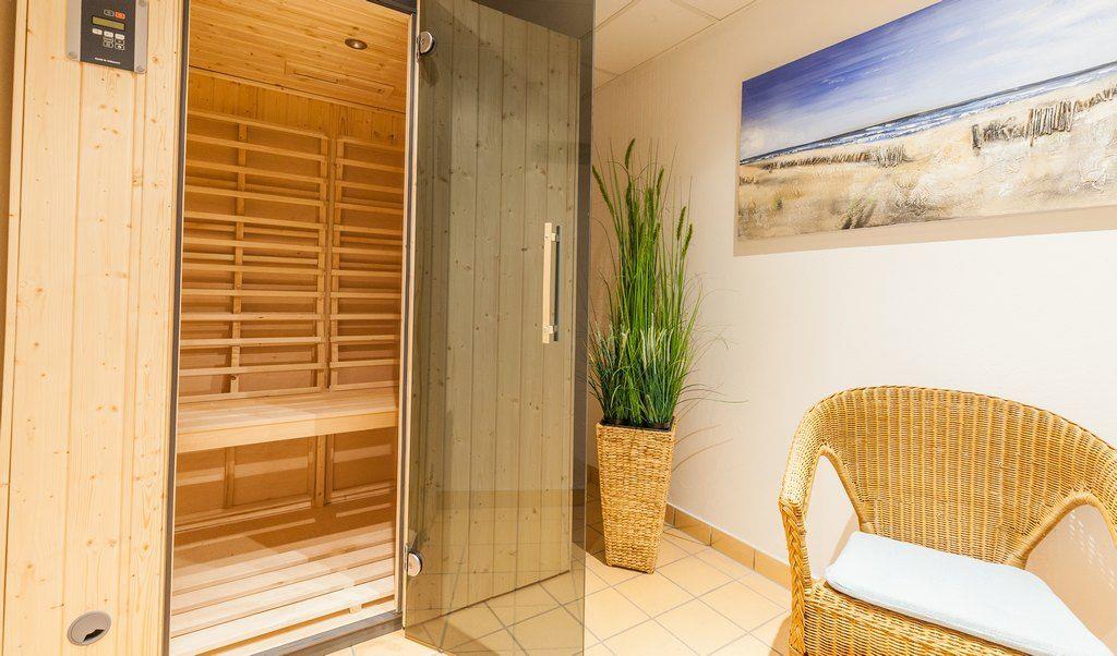 Gemütliche Ferienwohnung in einer Appartementanlage direkt am Ostseestrand in Kronsgaard mit Meerblick und gemeinschaftlichem Wellnessbereich.