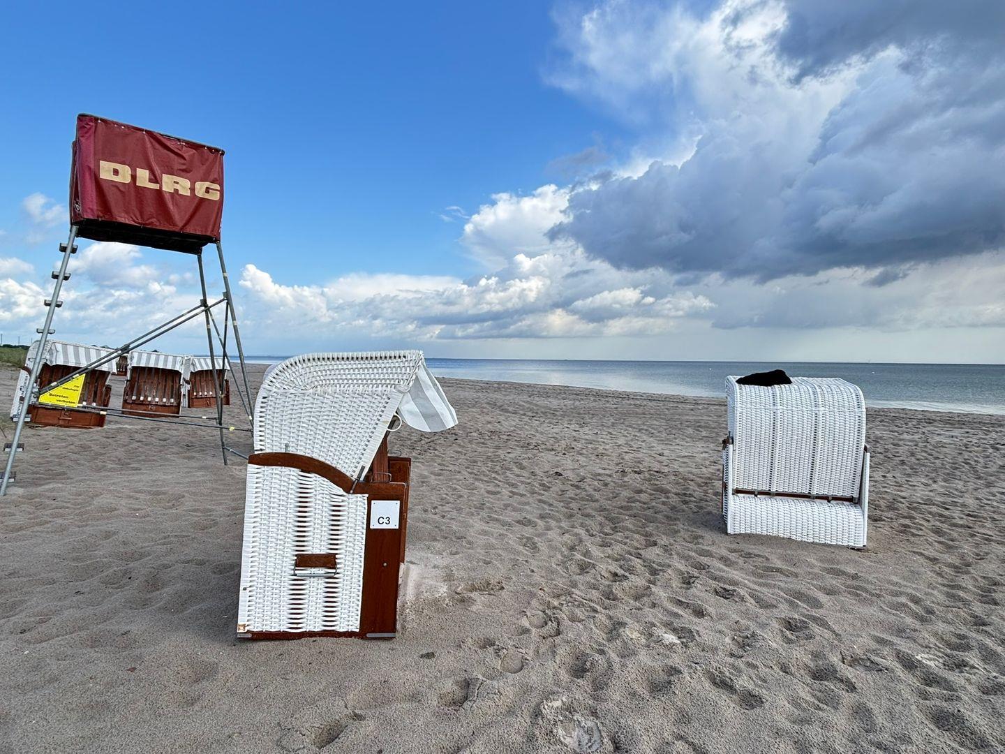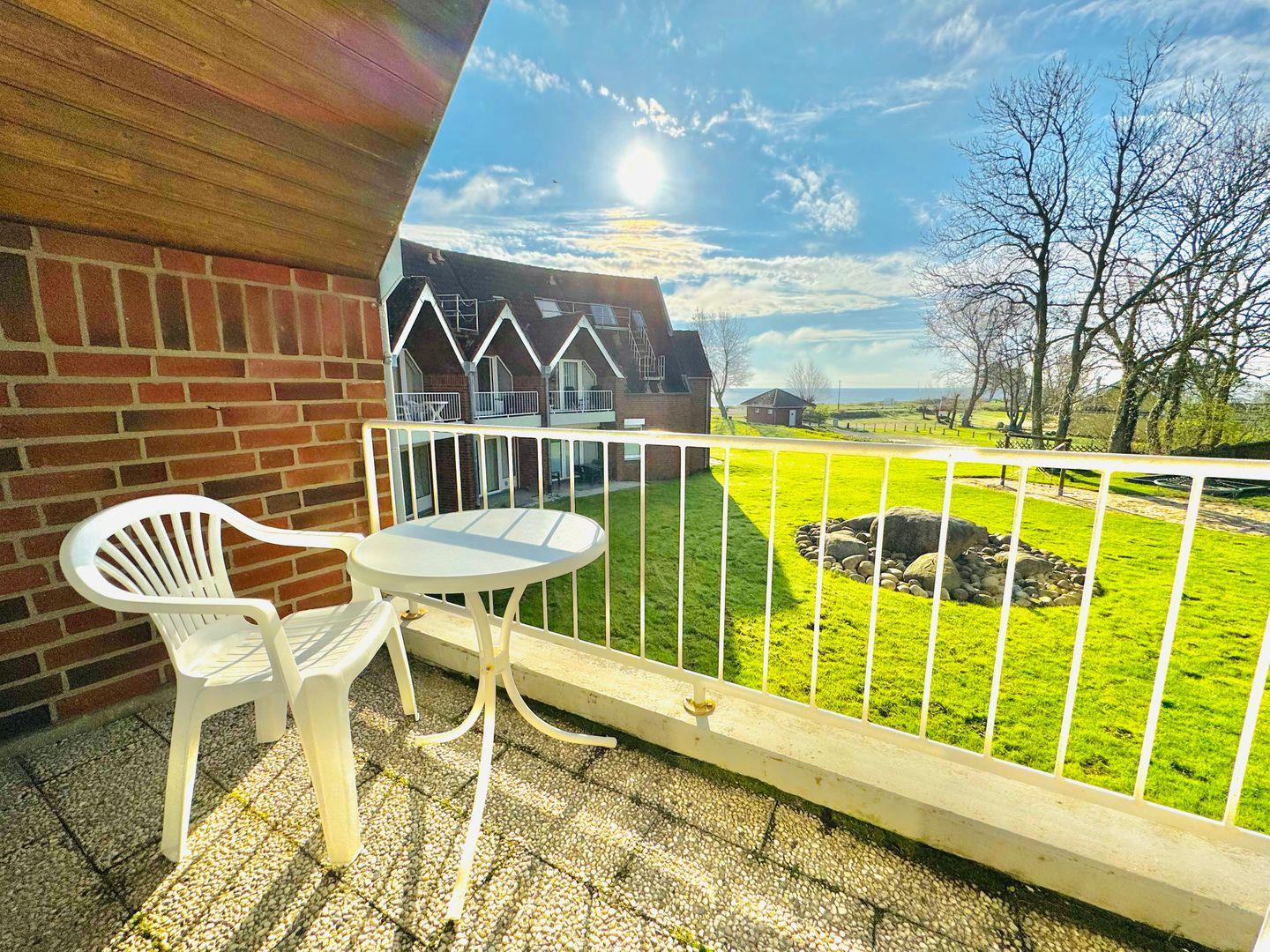 Der teilweise überdachte Balkon lädt zum Verweilen im Freien ein und bietet einen herrlichen Blick auf die Ostsee. Im Badezimmer mit Fußbodenheizung erwartet Sie eine ebenerdige Dusche, WC, Haartrockner, Spiegel, Waschbecken und ein Fenster für frische Meeresluft.