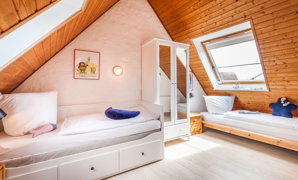 Die 60 qm große Wohnung verfügt über zwei gemütliche Schlafzimmer. Im ersten Schlafzimmer erwartet Sie ein komfortables Doppelbett mit getrennten Matratzen (160x200 cm), einem offenen Fußende, sowie einem geräumigen Einbaukleiderschrank und Verdunklungsmöglichkeiten. Das zweite Schlafzimmer bietet ein Einzelbett (90x200 cm) sowie ein weiteres Einzelbett, das sich bei Bedarf zu einem Doppelbett umfunktionieren lässt (Modell Hemnes von IKEA). Auch hier finden Sie einen Kleiderschrank und Verdunklungsmöglichkeiten für eine erholsame Nachtruhe.