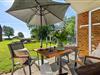 Die großzügige Wiese lädt sowohl zur Aktivität als auch zur Entspannung ein und bietet Dir von der Terrasse aus einen direkten Weg zum Strand.