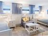 Auch dieses Zimmer ist mit Verdunkelungs-Plissees, Vorhängen und einem integrierten Fliegengitter ausgestattet.