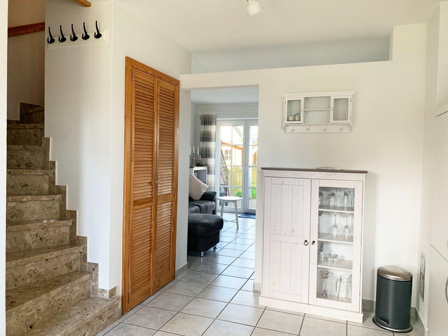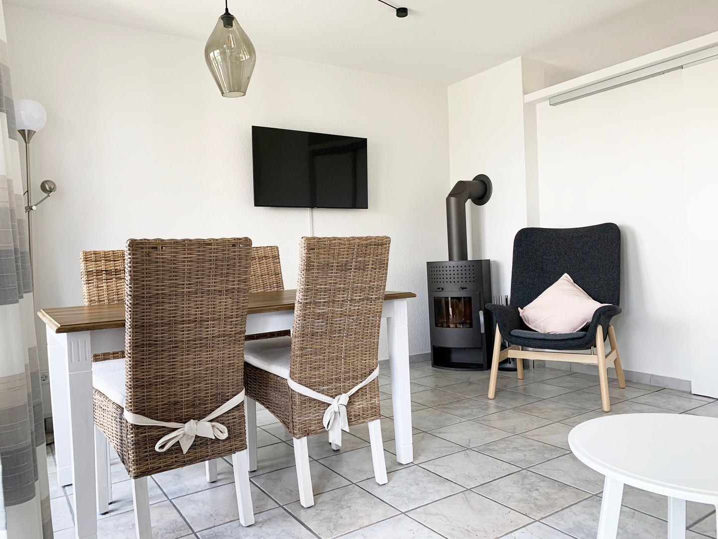 Herzlich willkommen in der „Kleinen Strandkoje“, Ihrem gemütlichen Rückzugsort im idyllischen Kronsgaard. Dieses charmante Reihenmittelhaus bietet auf ca. 74 m² ein behagliches Zuhause für bis zu vier Personen und liegt nur einen kurzen Spaziergang von etwa 800 Metern vom feinsandigen Ostseestrand entfernt. Schon beim Betreten des Erdgeschosses empfängt Sie eine wohnliche Atmosphäre: Der kombinierte Wohn- und Essbereich lädt mit einem bequemen Sofa, Sesseln und einem Kaminofen zu gemütlichen Stunden ein, während das schnelle Glasfaser-WLAN, Kabel-TV und eine Auswahl an Büchern und Spielen für beste Unterhaltung sorgen. Die offene, voll ausgestattete Küche mit Cerankochfeld, Geschirrspüler sowie Filter- und Kaffeepadmaschine lässt keine Wünsche offen, und ein praktisches Gäste-WC ergänzt den Komfort auf dieser Ebene.