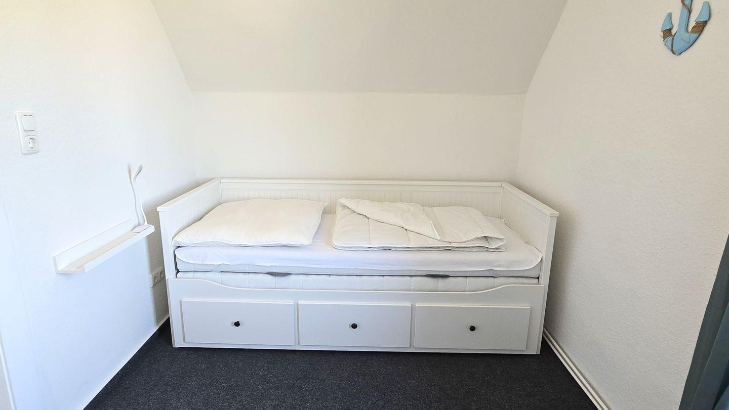 Schlafzimmer III: Bett mit Ausziehfunktion / Kommode