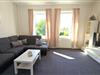 Wohnbereich: schöne L-Couch / Fernseher / Schaukelstuhl