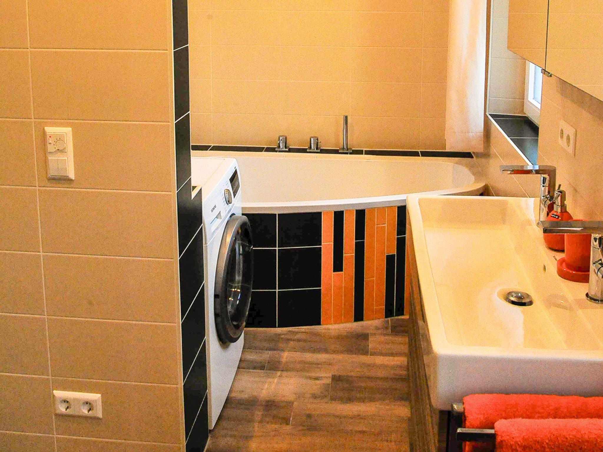 Diese Wohnung bietet auf 75 m² ganz viel: Ein großer Wohnraum ist das Herz der Ferienwohnung. Das große Ledersofa lässt sich in ein bequemes Doppelbett verwandeln. Am ausziehbaren Esstisch kann man alles genießen, was man vorher im geräumigen Küchenbereich an der Kücheninsel gekocht hat. Das Bad ist mit Waschtrockner und Dusche zum einen funktional, mit der Badewanne zum anderen auch Ort der Entspannung. Die Beleuchtung im Stil eines Sternenhimmels, eine Kerze und vielleicht ein Glas Sekt machen das Ganze perfekt. Das geräumige Schlafzimmer ist mit einem Doppelbett ausgestattet. Im Sommer ist die große Terrasse im Grünen ein traumhaftes Platzerl und im Winter wird’s drinnen mit Fußbodenheizung und Holzofen so richtig gemütlich. Feuerholz steht kostenfrei direkt vor dem Haus zur Verfügung.