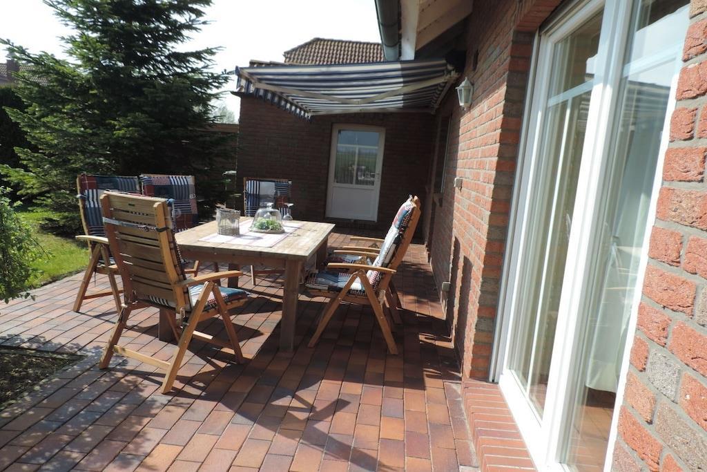 Gemütliches Landhaus am Leuchtfeuer in Krummhörn mit Sauna, Kamin und großer Terrasse für entspannte Urlaubsmomente.