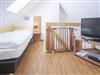 Im Obergeschoss zwei freundlich eingerichtete Schlafzimmer (eins mit Doppelbett, eins mit zwei Einzelbetten) mit einer weiteren Musik-Anlage. Große Kleiderschränke und viel Extra-Stauraum unterstreichen die Familienfreundlichkeit unseres Hauses. Hier finden Sie auch das zweite Bad mit Dusche, Föhn und Kosmetikspiegel.