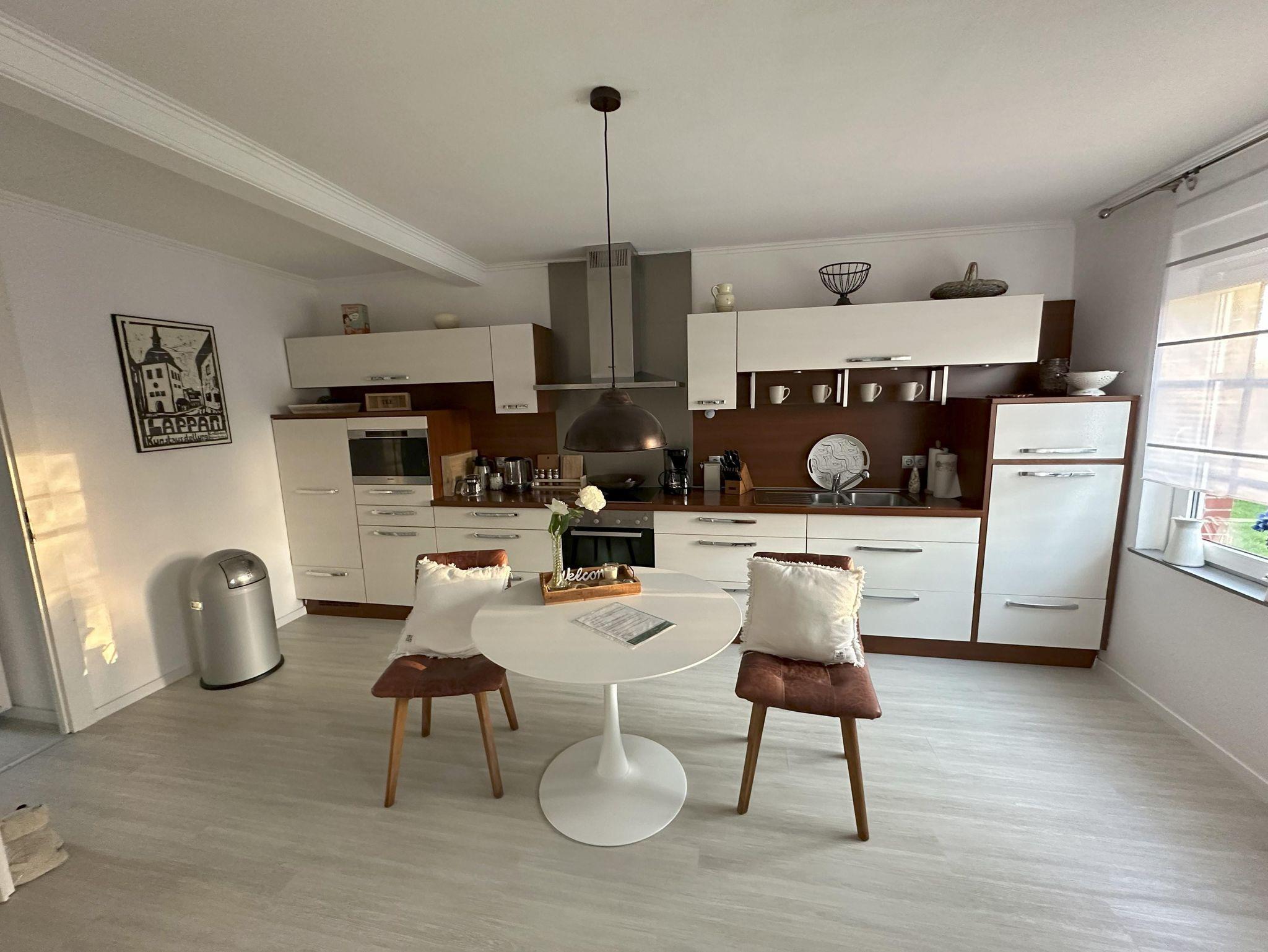 Die Wohnung mit Wohnzimmer, Schlafzimmer, Küche und Duschbad hat eine hochwertige Küche mit Miele-Geräten, Spülmaschine, Dampfgarer, Kühlschrank und Backofen. Hier macht das Frühstücken richtig Spaß.