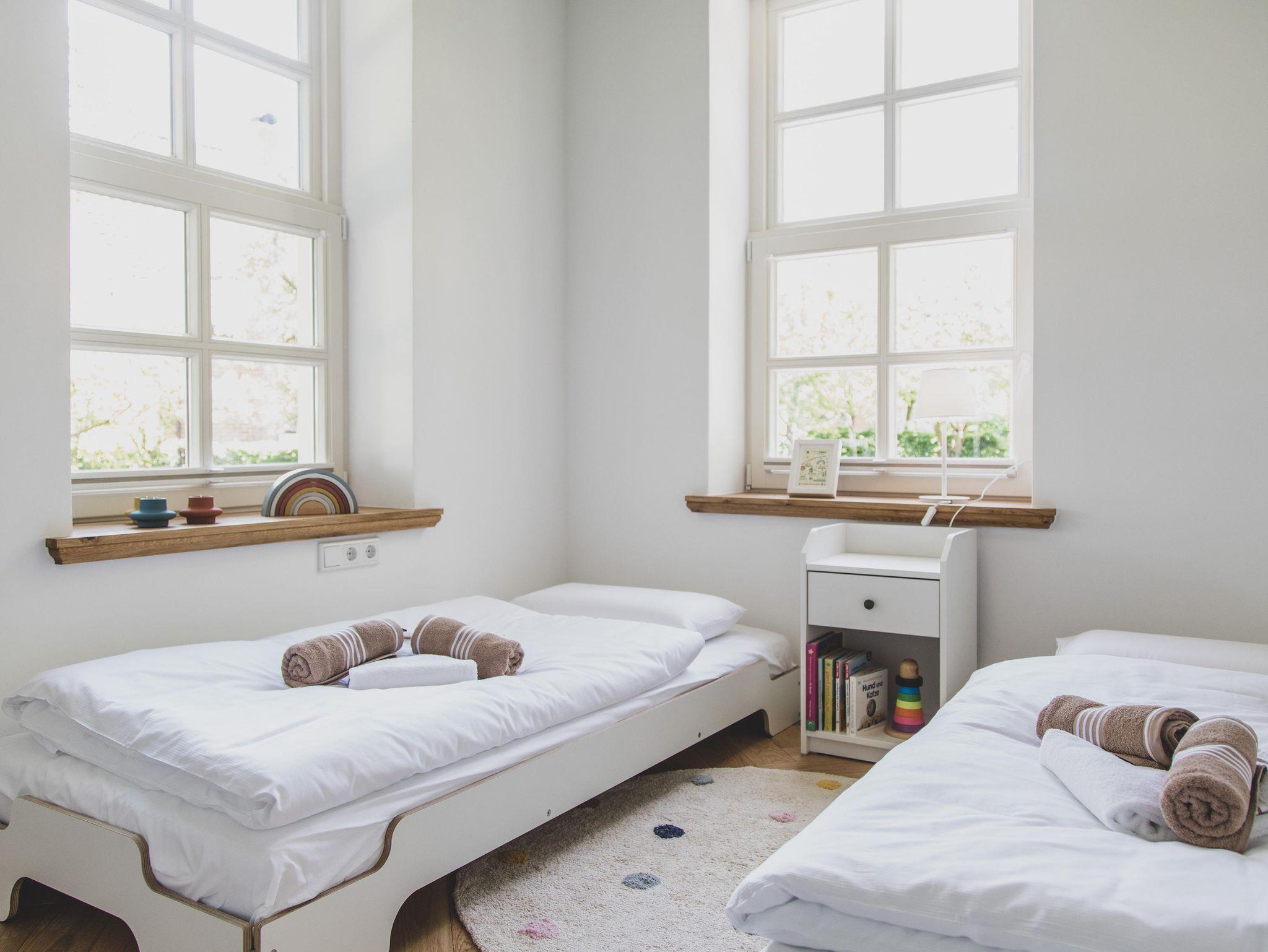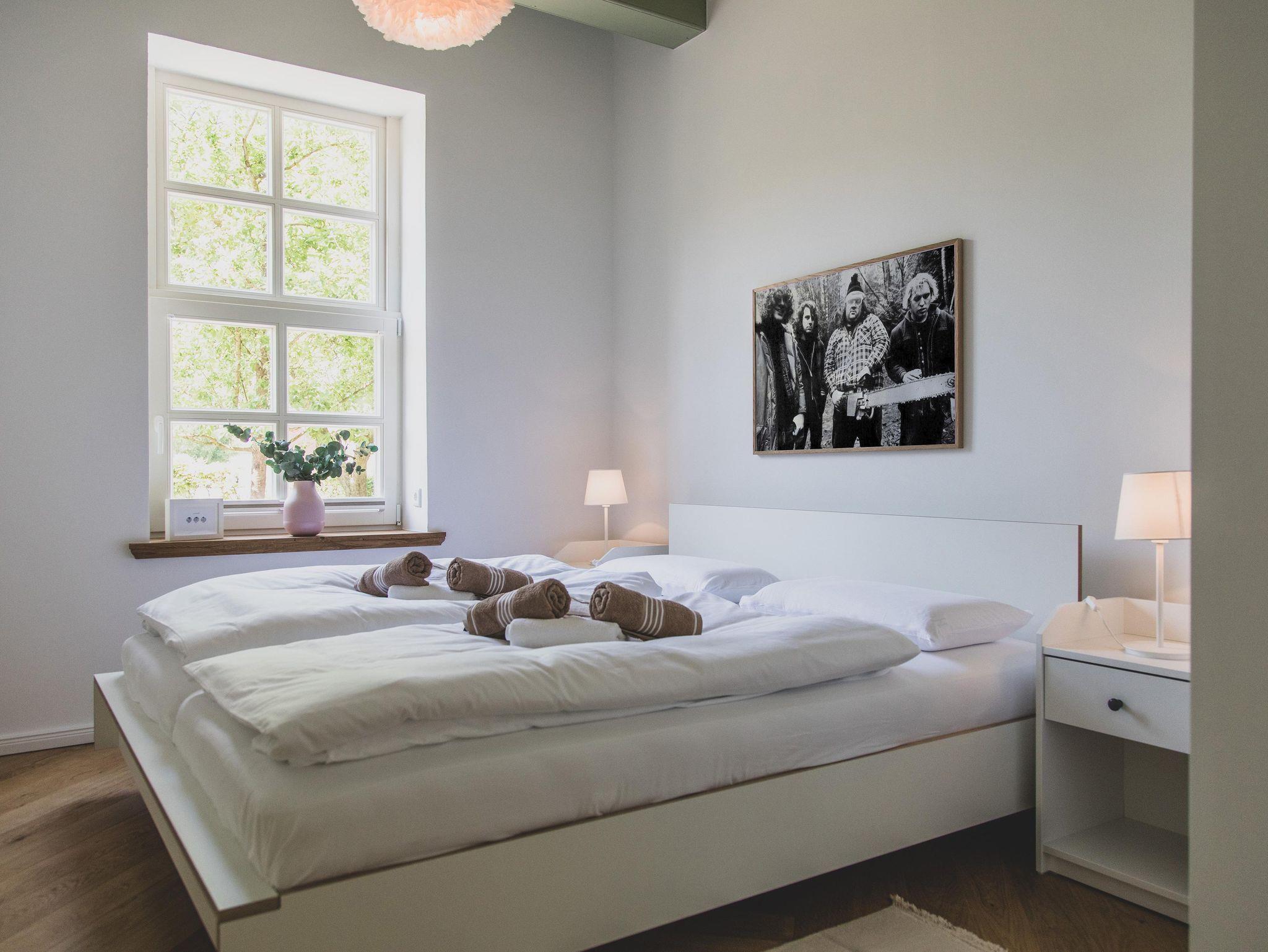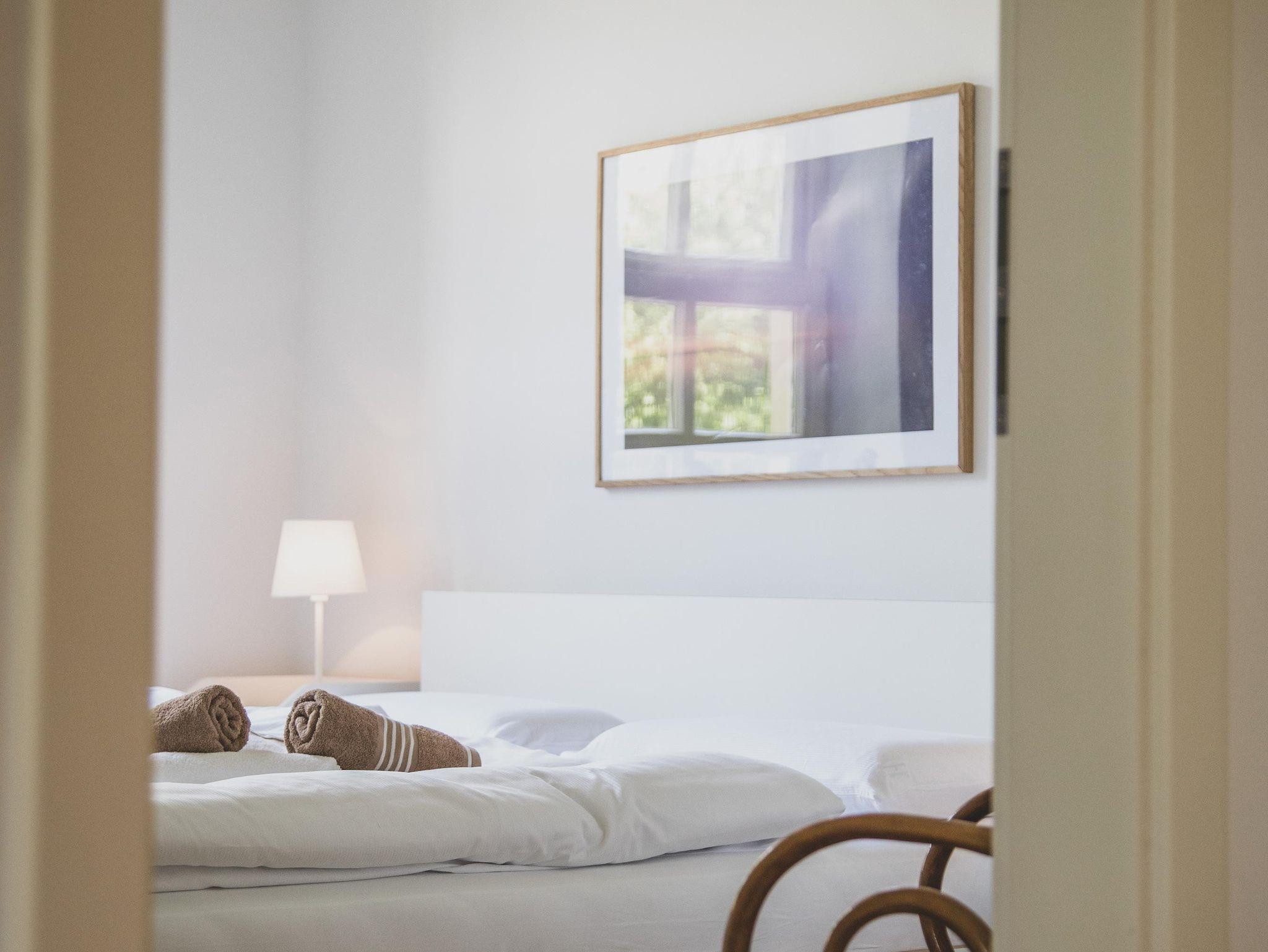 Schlafzimmer 1 bietet ein Doppelbett und den unverbauten Blick in den Garten und die Natur. Im zweiten Schlafzimmer finden Sie 2 Einzelbetten.