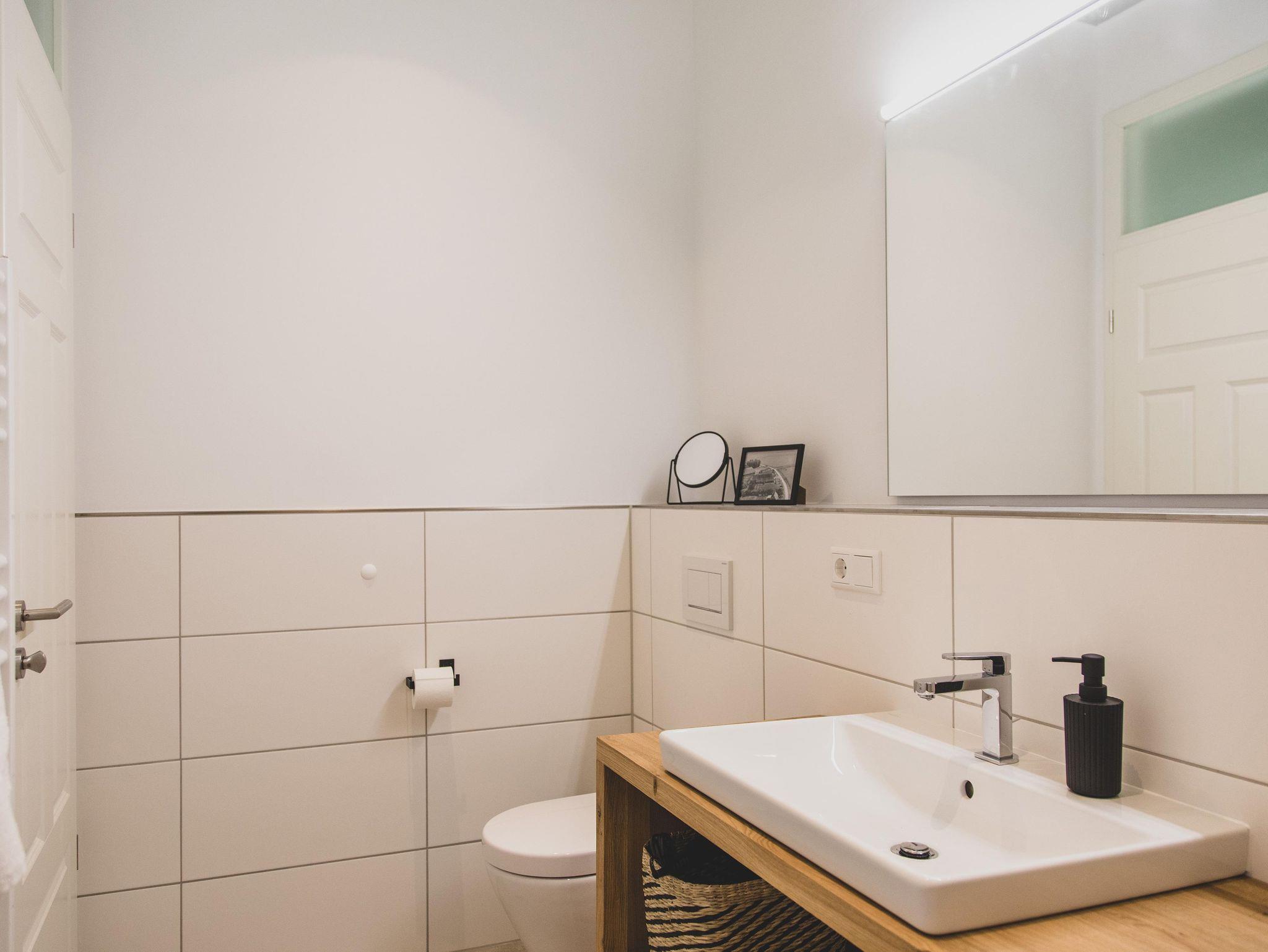 Ein großzügiges Bad mit Dusche lädt zur Entspannung ein.