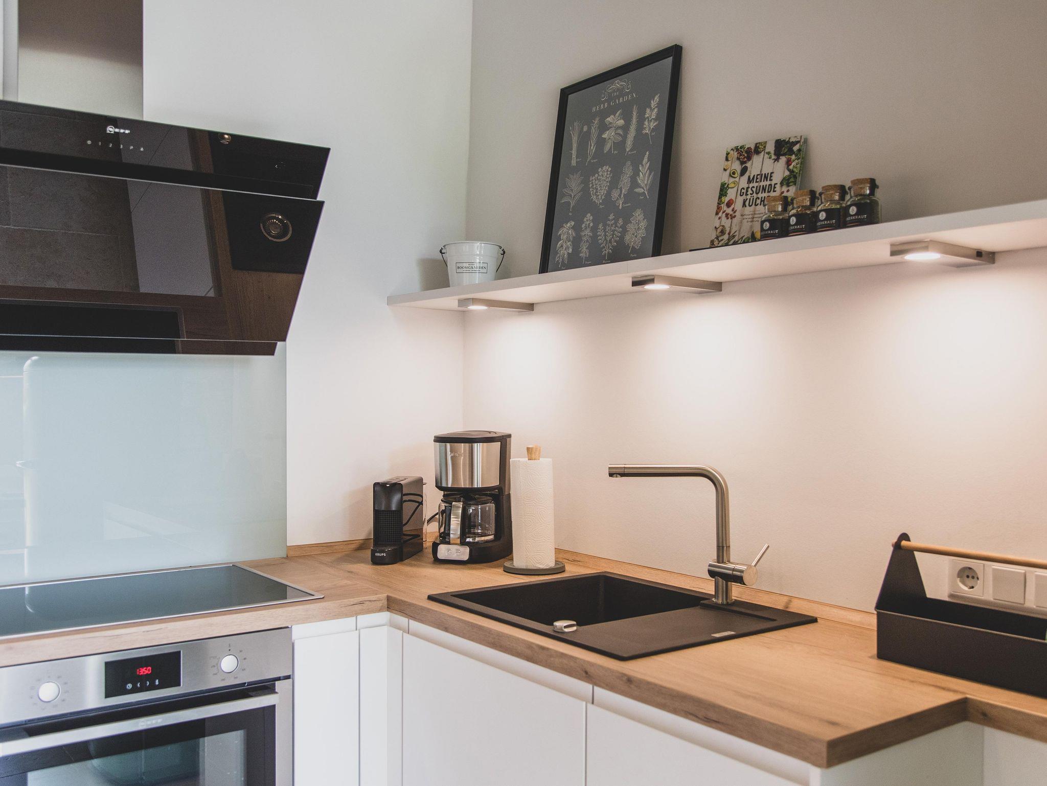 Kochliebhaber kommen in der voll ausgestatteten Küche auf ihre Kosten. Wer trotz Ostfriesentee seinen Kaffee vermisst, wird sich über die Nespresso-Maschine samt Milchaufschäumer freuen.