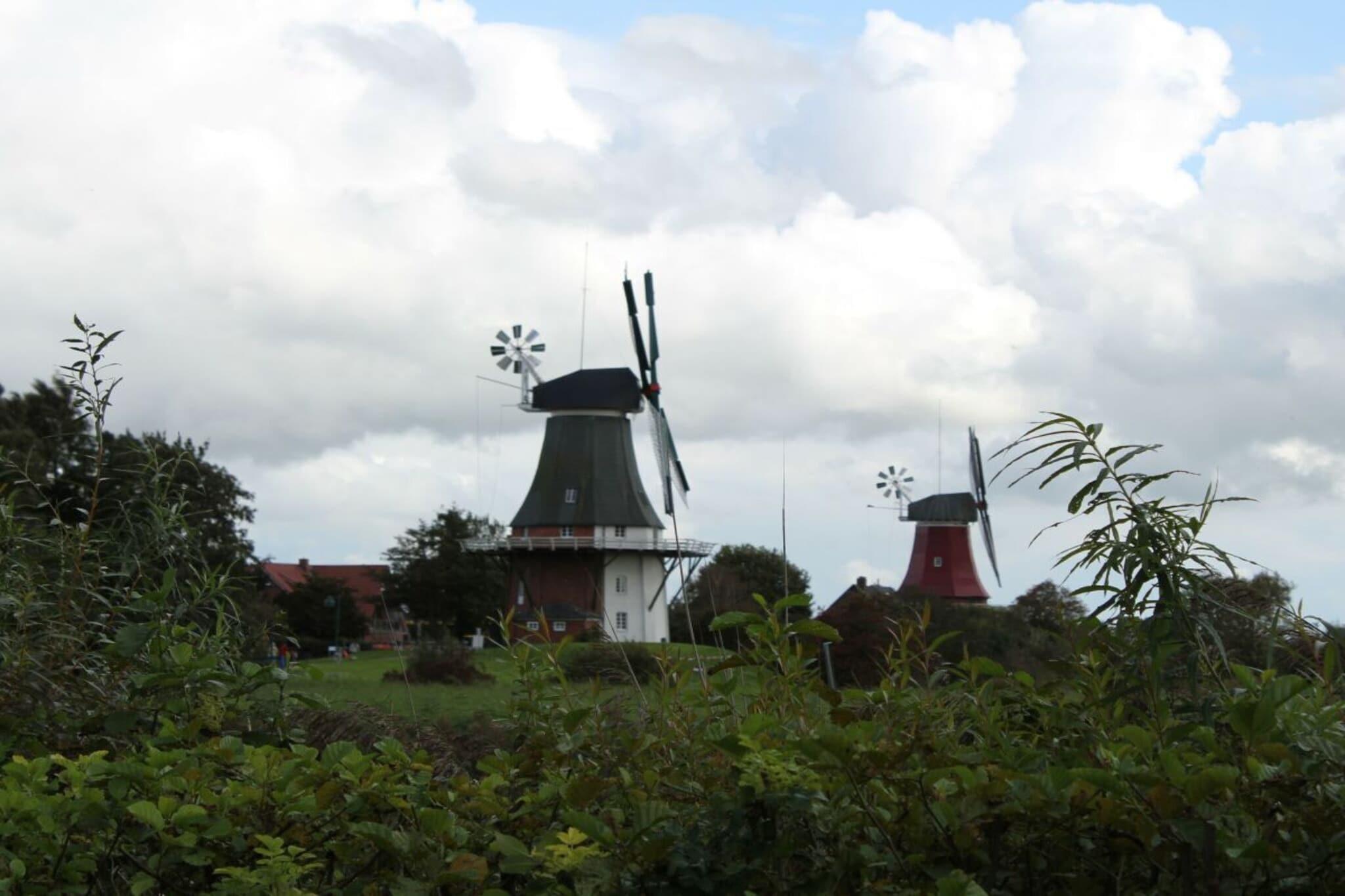 Komfortable Ferienwohnung in Krummhörn mit direktem Blick auf die Zwillingsmühlen und zwei Terrassen.