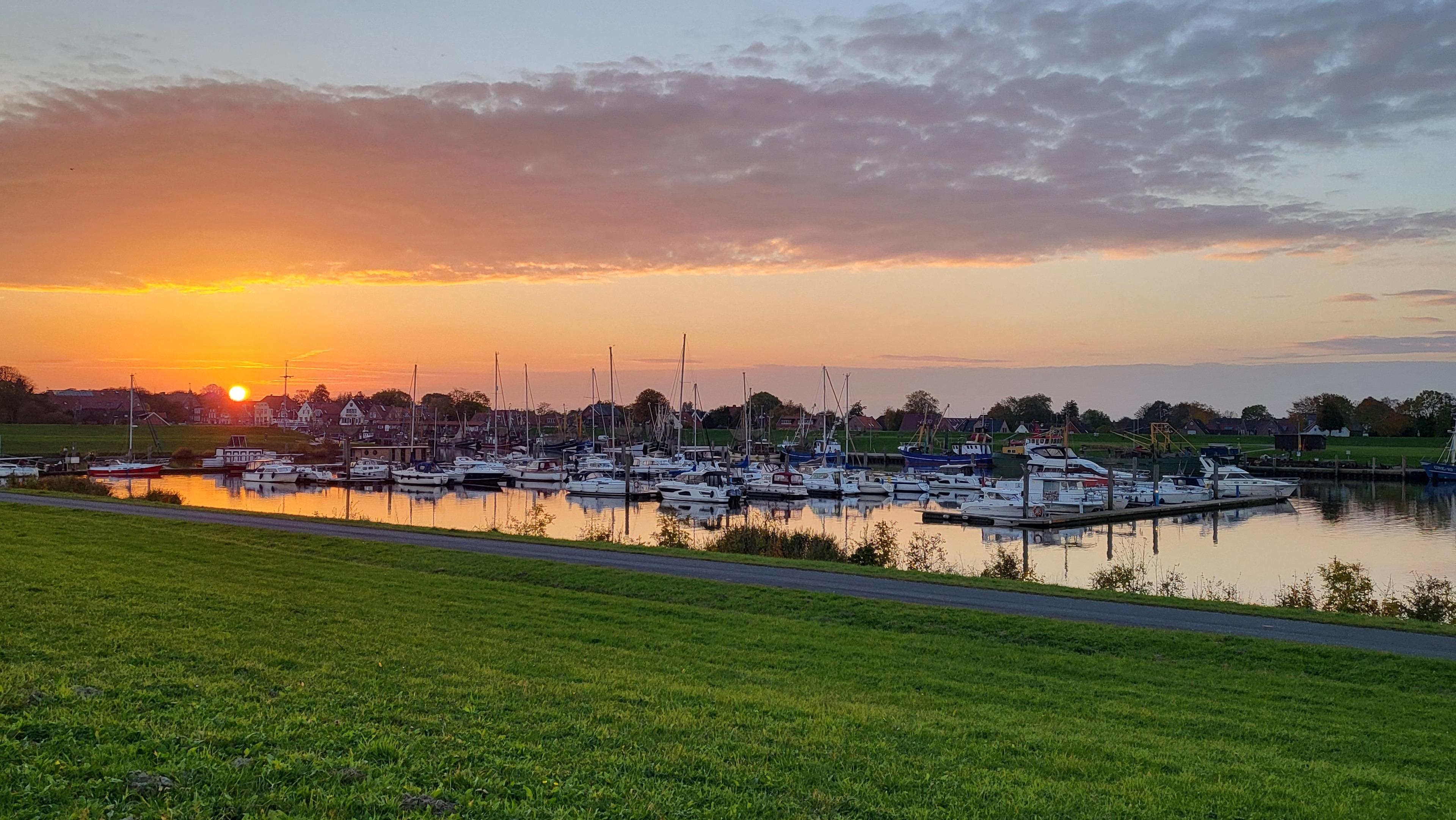 Das malerische Hafenstädtchen Greetsiel mit seinen Wahrzeichen – die berühmten Zwillingsmühlen liegt nur ca. 4 km entfernt.