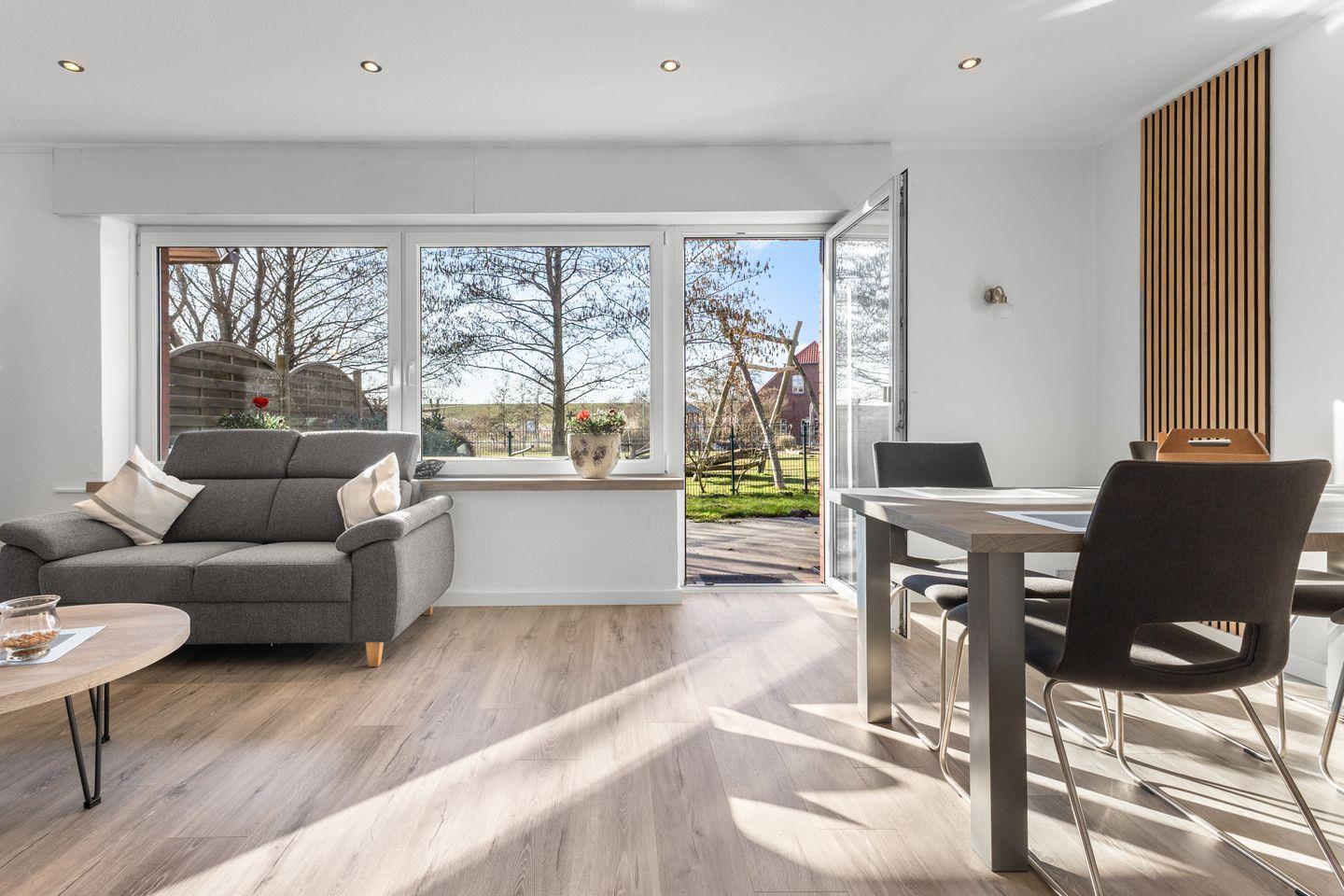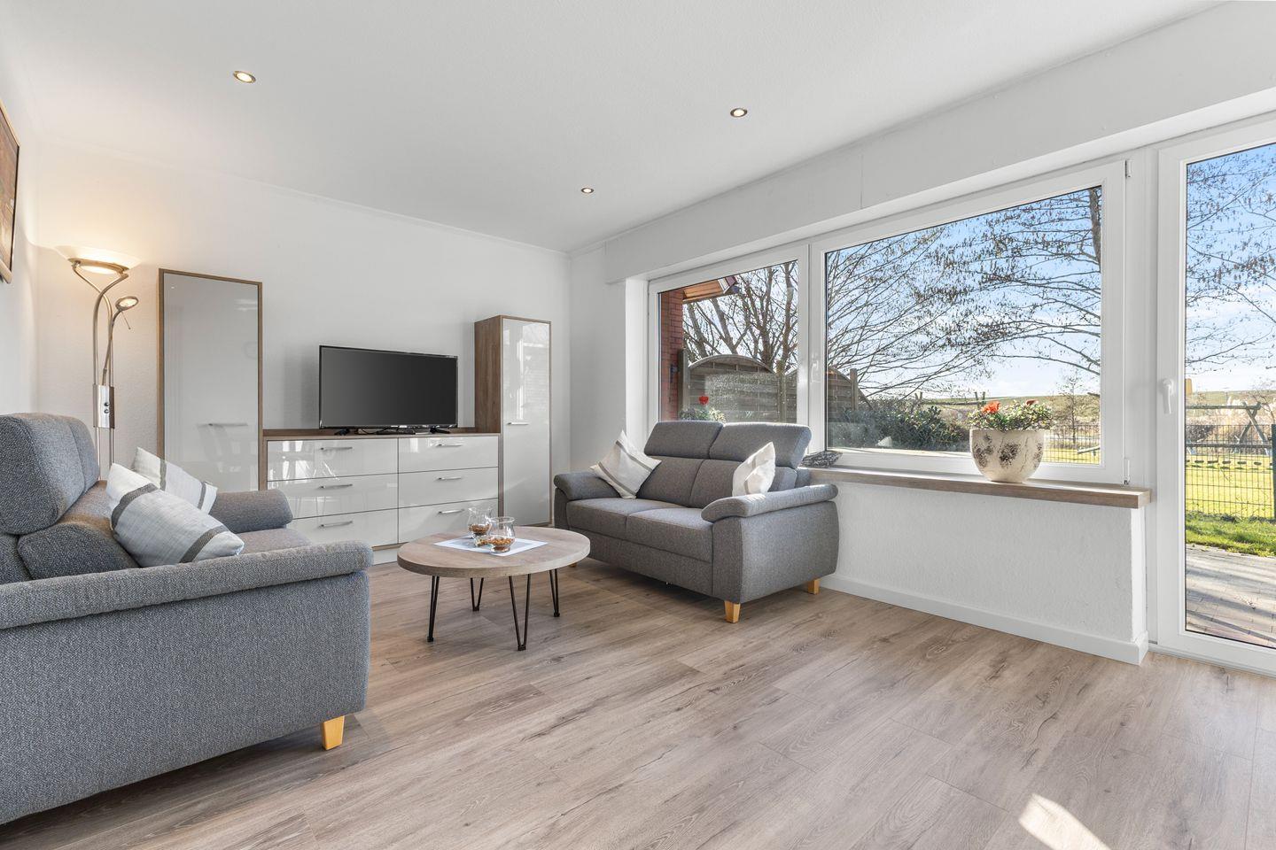 Gemütliches Ferienhaus Carpe Tempus in Krummhörn mit Garten, zwei Bädern und Nähe zum Uplewarder Trockenstrand für entspannte Urlaubstage.