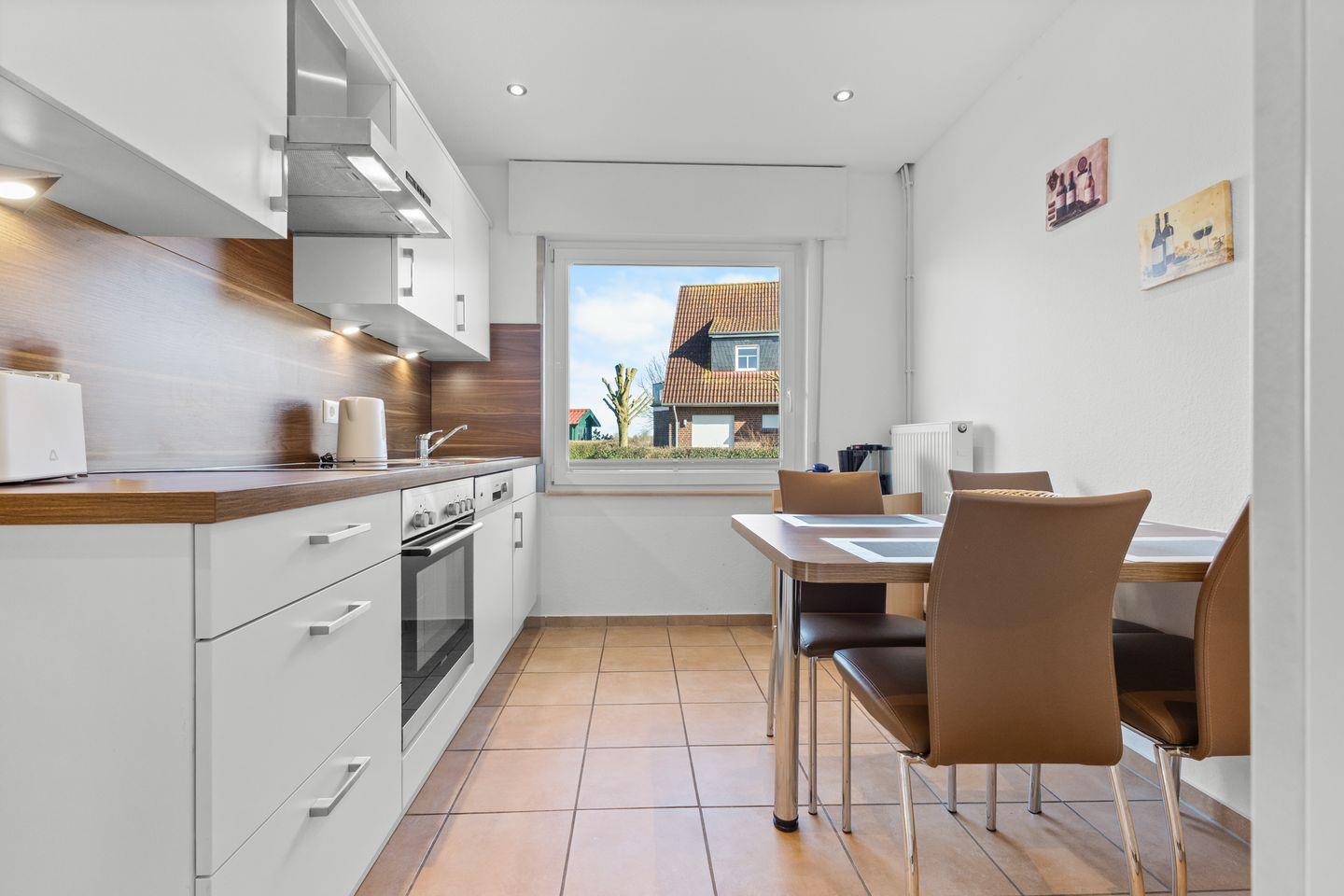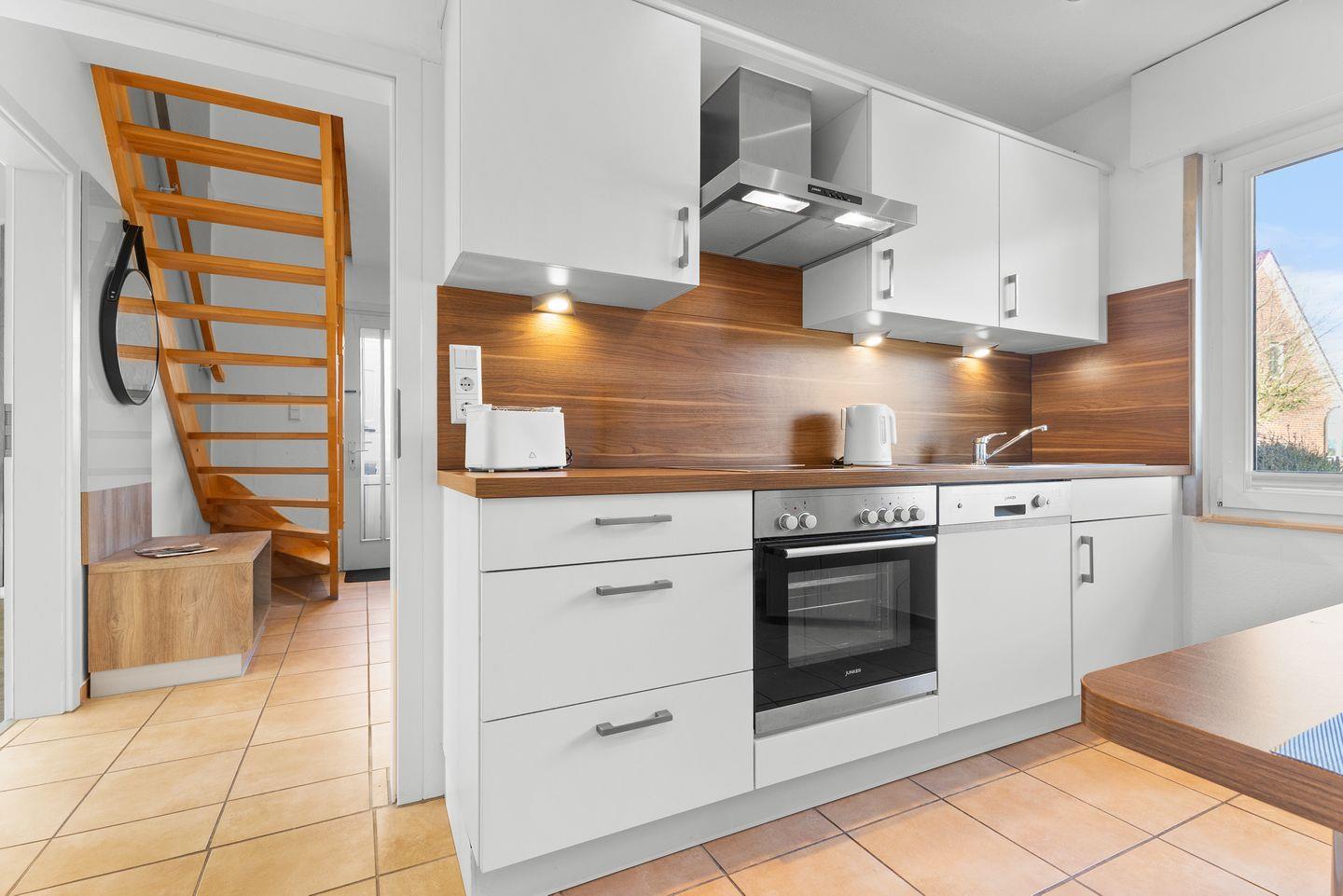 - Eine voll ausgestattete Küche mit einem großzügigen Esstisch, perfekt für gemeinsame Mahlzeiten und geselliges Beisammensein.