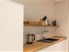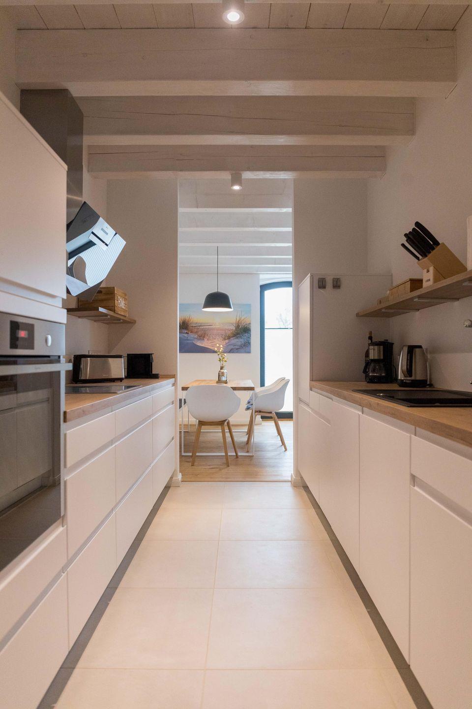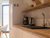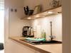 Die Wohnung verfügt über eine gut ausgestattete Küche im Eingangsbereich. Hier stehen Ihnen alle wesentlichen Küchenutensilien zur Verfügung, von der Induktionsherdplatte über eine moderne Espressomaschine bis hin zu einer Heißluftfritteuse.
