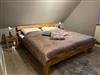 Im Obergeschoss erwarten Sie zwei gemütliche Schlafzimmer und ein weiteres Badezimmer mit Badewanne. Das Elternschlafzimmer ist mit einem komfortablen Doppelbett (180x200) ausgestattet, während das „Kinderzimmer“ über ein großzügiges Bett (140x200) verfügt. Für die Kleinsten steht ein Kindergitterbett (60x120) bereit. Im Wohnbereich bietet das Sofa eine zusätzliche Schlafmöglichkeit.