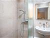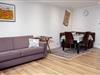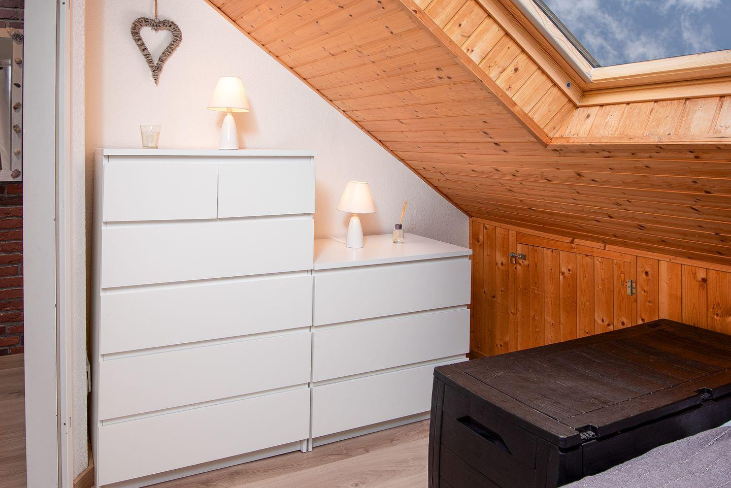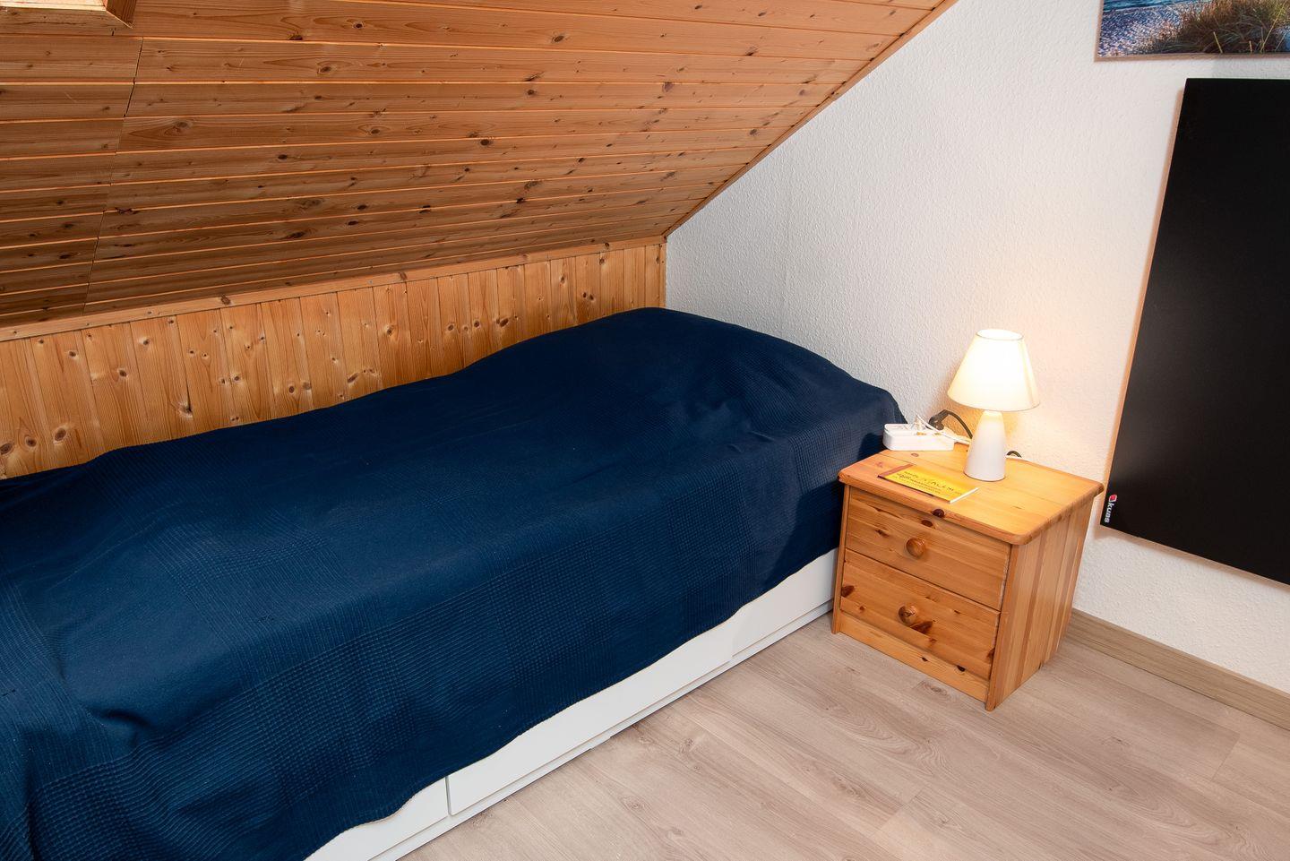 Im Obergeschoss befinden sich zwei komfortable Schlafzimmer – eines mit einem Doppelbett, das andere mit zwei Einzelbetten. Das Erdgeschoss überzeugt mit einem offenen Wohn- und Essbereich, der durch einen Kaminofen eine besonders einladende Wärme ausstrahlt. Von hier aus gelangen Sie direkt auf die sonnige Terrasse, die mit Gartenmöbeln und einem Sonnenschirm ausgestattet ist – perfekt für ein entspanntes Frühstück oder einen lauen Sommerabend im Freien. Die voll ausgestattete Küche lässt keine Wünsche offen, und das Bad mit Dusche sorgt für zusätzlichen Komfort.
