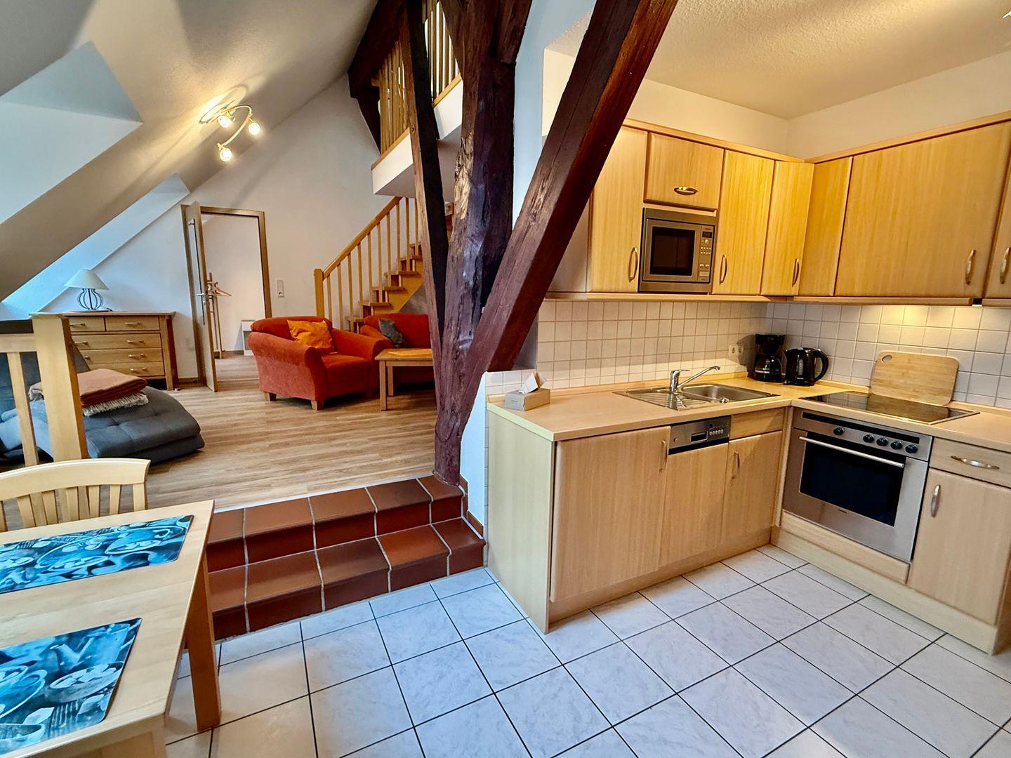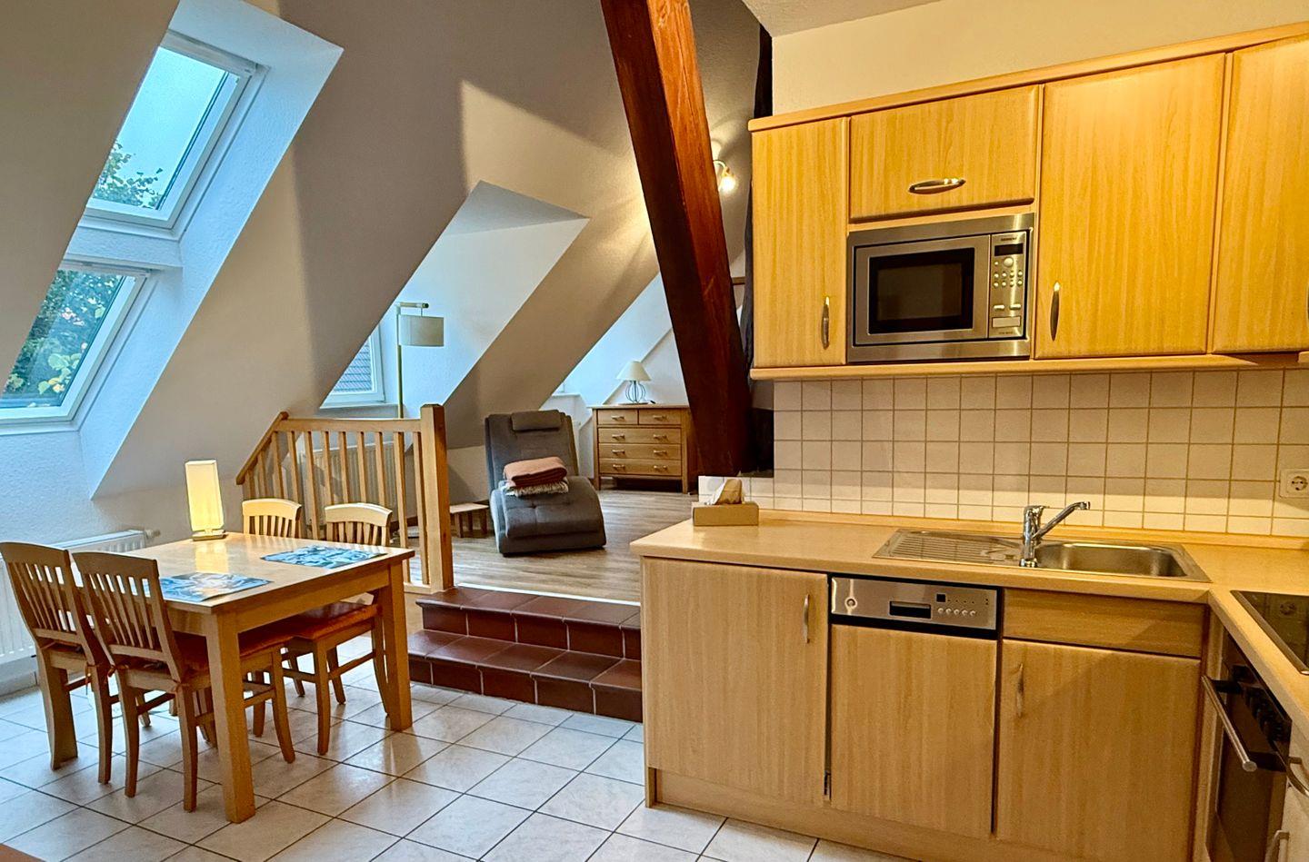 - voll ausgestattete Küche: Mikrowelle, Ceranfeld, Spülmaschine, Backofen u.v.m.