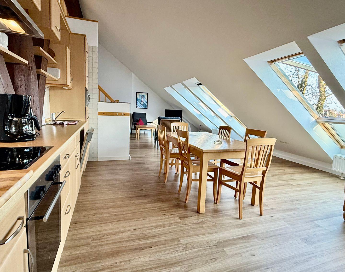 - voll ausgestattete Küche: Mikrowelle, Ceranfeld, Spülmaschine, Backofen u.v.m.