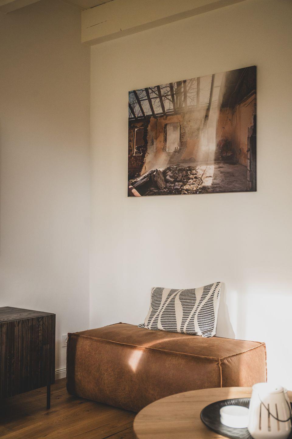 Die Ferienwohnung erstreckt sich über zwei Ebenen und verfügt über einen separaten Eingang, der nicht über die große Eingangshalle des Gulfhofs führt. So genießt ihr zusätzliche Privatsphäre und könnt direkt in euer eigenes Urlaubsreich eintreten.