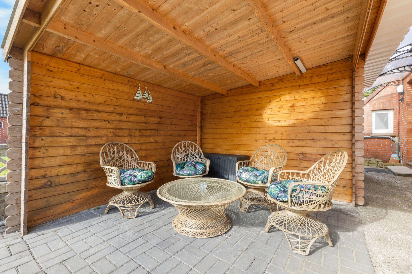 Auch im Außenbereich können Sie die Ruhe genießen: Ihnen steht ein abgetrennter, privater Gartenbereich mit überdachter Terrasse zur Verfügung – perfekt für entspannte Stunden an der frischen Luft.