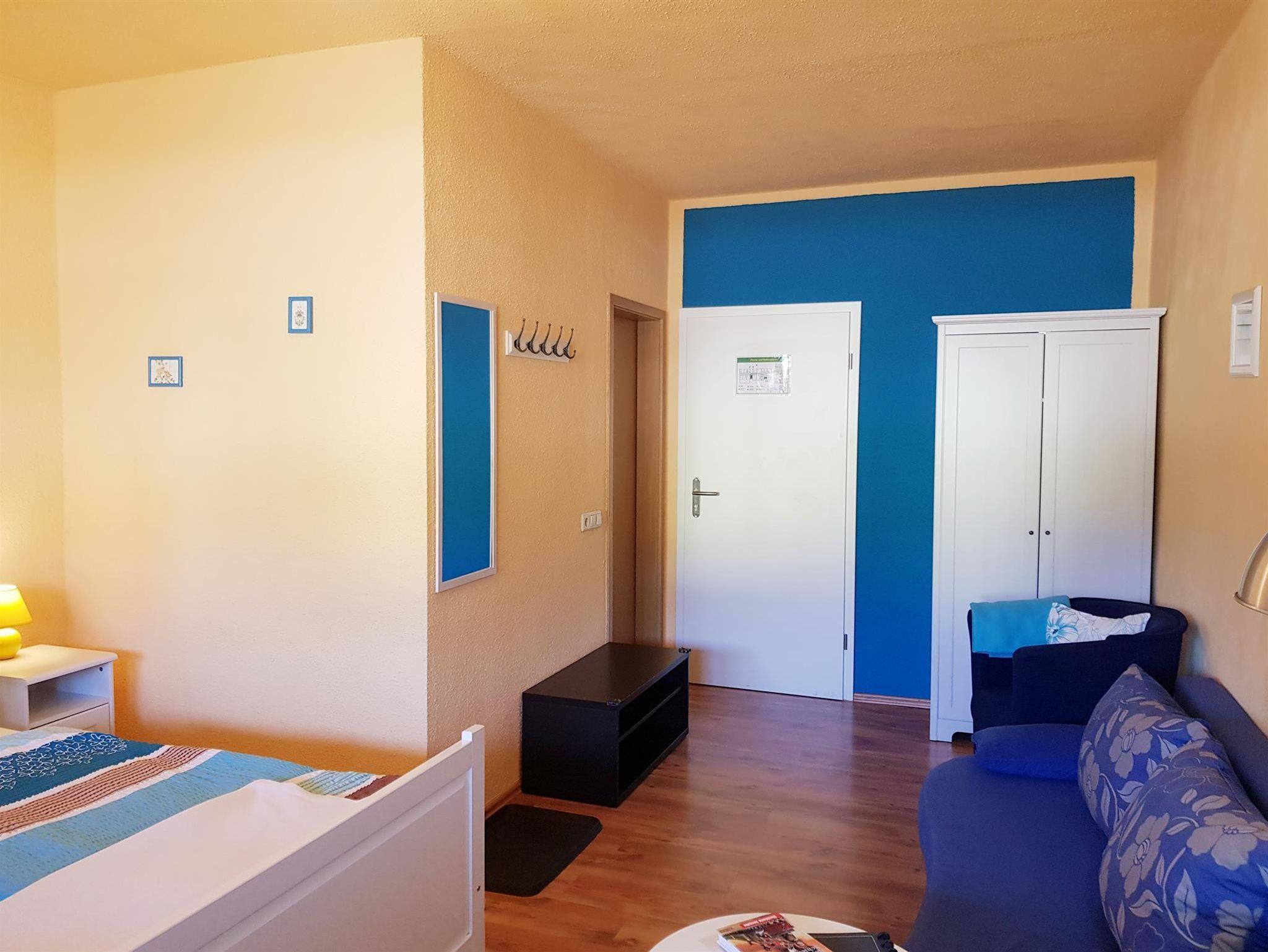 Die Doppelzimmer (20 qm; erste Etage; straßenseitig, mit Balkon und Bahnblick) sind, wie alle unsere Zimmer, nach Schriftstellern benannt, welche Gedichte und Geschichten über die Eisenbahn geschrieben haben. Die Texte liegen neben einer Biographie des Autors zum Nachlesen in den Zimmern aus. Im Zimmer befindet sich ein bezogenes Doppelbett (1,80 m x 2,00 m), ein Flachbild-TV, ein kleiner Tisch und zwei Sessel, eine ausziehbare Schlafcouch (1,25 m x 2,00 m), ein kleiner Kühlschrank und eine kleine Flasche Wasser (0,5 l). Im Bad befinden sich Handtücher, ein Schminkspiegel, Kosmetiktücher, ein Fön und flüssige Handseife.