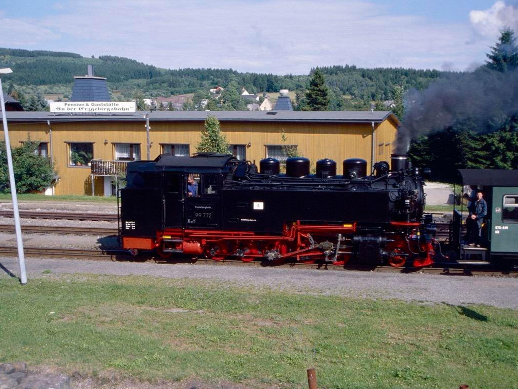 Unser familiengeführtes Haus befindet sich direkt am Haltepunkt ‚Hammerunterwiesenthal‘ der noch dampfbetriebenen Schmalspurbahn. Gegenüber der Pension liegt ein Rodelhang, an dem ein kleiner Imbiss eingenommen und sich mit dem Schlitten nach oben gezogen werden kann. Auch der Wanderübergang nach Tschechien befindet sich in unmittelbarer Nähe. Zum Haus gehören ein großer kostenloser Parkplatz und ein Abstellraum für Fahrräder und Wintersportgeräte.