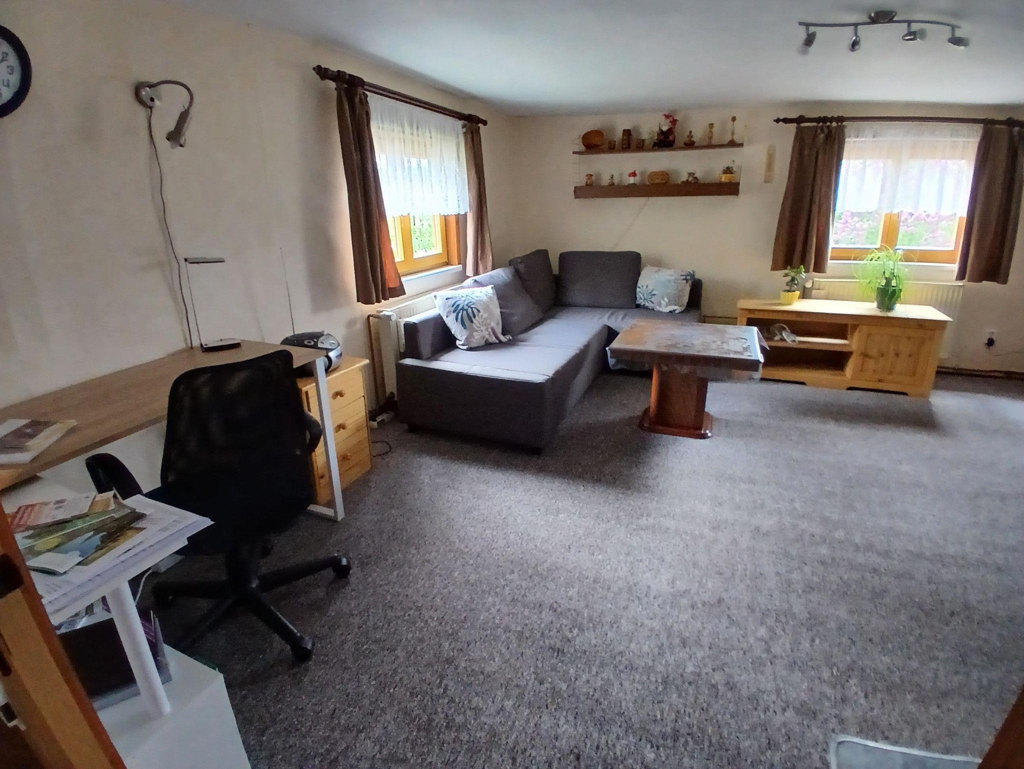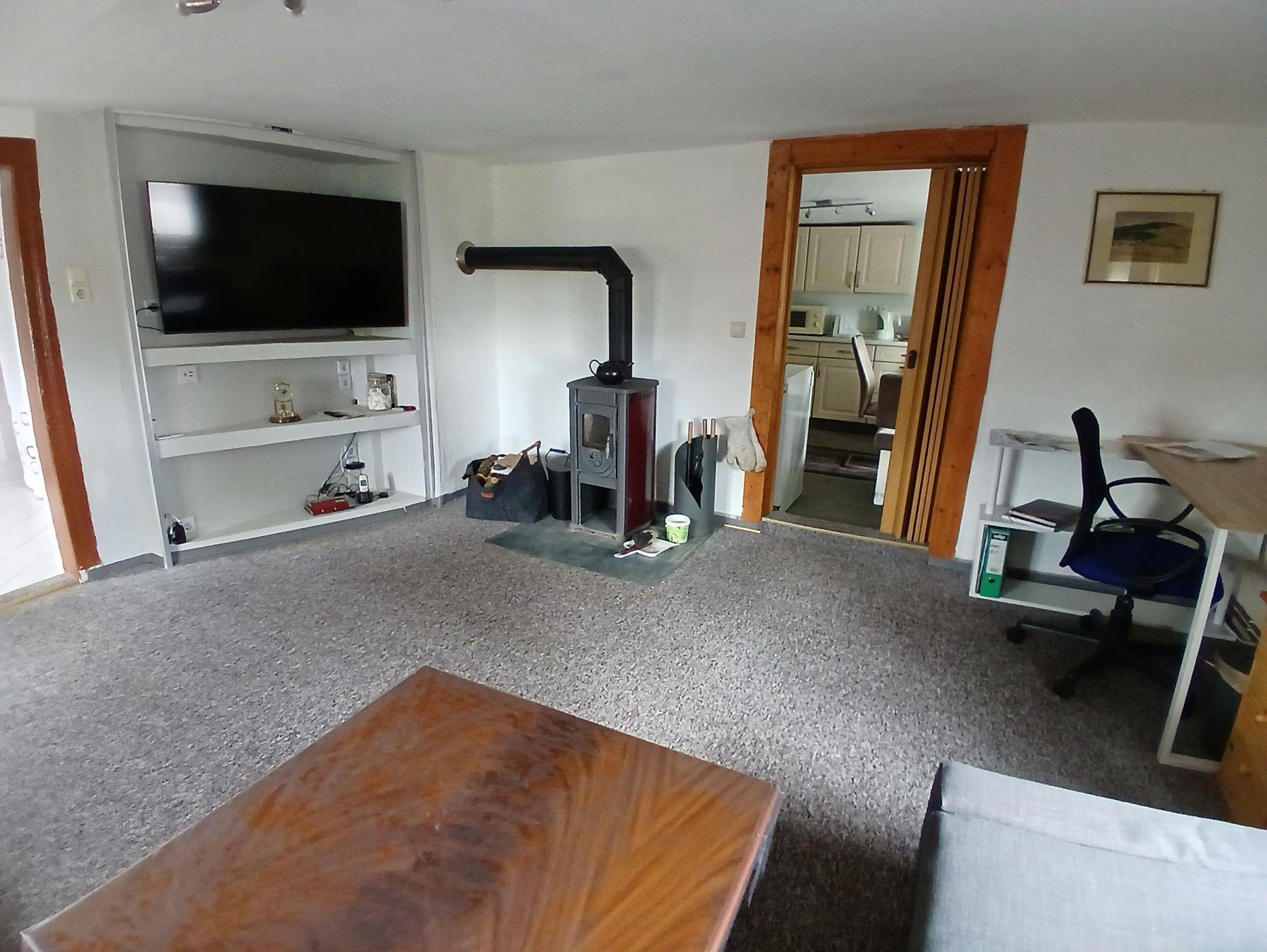 Ihre Ferienwohnung (70 qm) mit eigenen Eingang hat eine voll ausgestattete Küche. Sie haben im Wohnzimmer eine Eckcouch mit Liegefunktion, TV, WLAN, sowie einen kleinen Kaminofen für gemütliche Stunden. Desweitern haben Sie ein Badezimmer mit Dusche sowie ein Schlafzimmer mit Doppelbett. Eine zusätzliche Aufbettung mit Doppelbett ist im Dachgeschoß des Hauses möglich bzw. eine Gästeliege oder ein Kinderbett stehen auf Anfrage zur Verfügung. Da wir uns in einem historischen Gebäude befinden, ist die Deckenhöhe der Zimmer 2 m. Der Parkplatz ist am Haus. Selbstverständlich dürfen Sie unseren Garten mit Grillecke für einen entspannten Abend gern mit nutzen. Eine Spielecke im Garten für die kleinen mit Sandkasten und Schaukel darf natürlich nicht fehlen. Der Brötchenservice beim Bäcker ist auf Anfrage möglich.