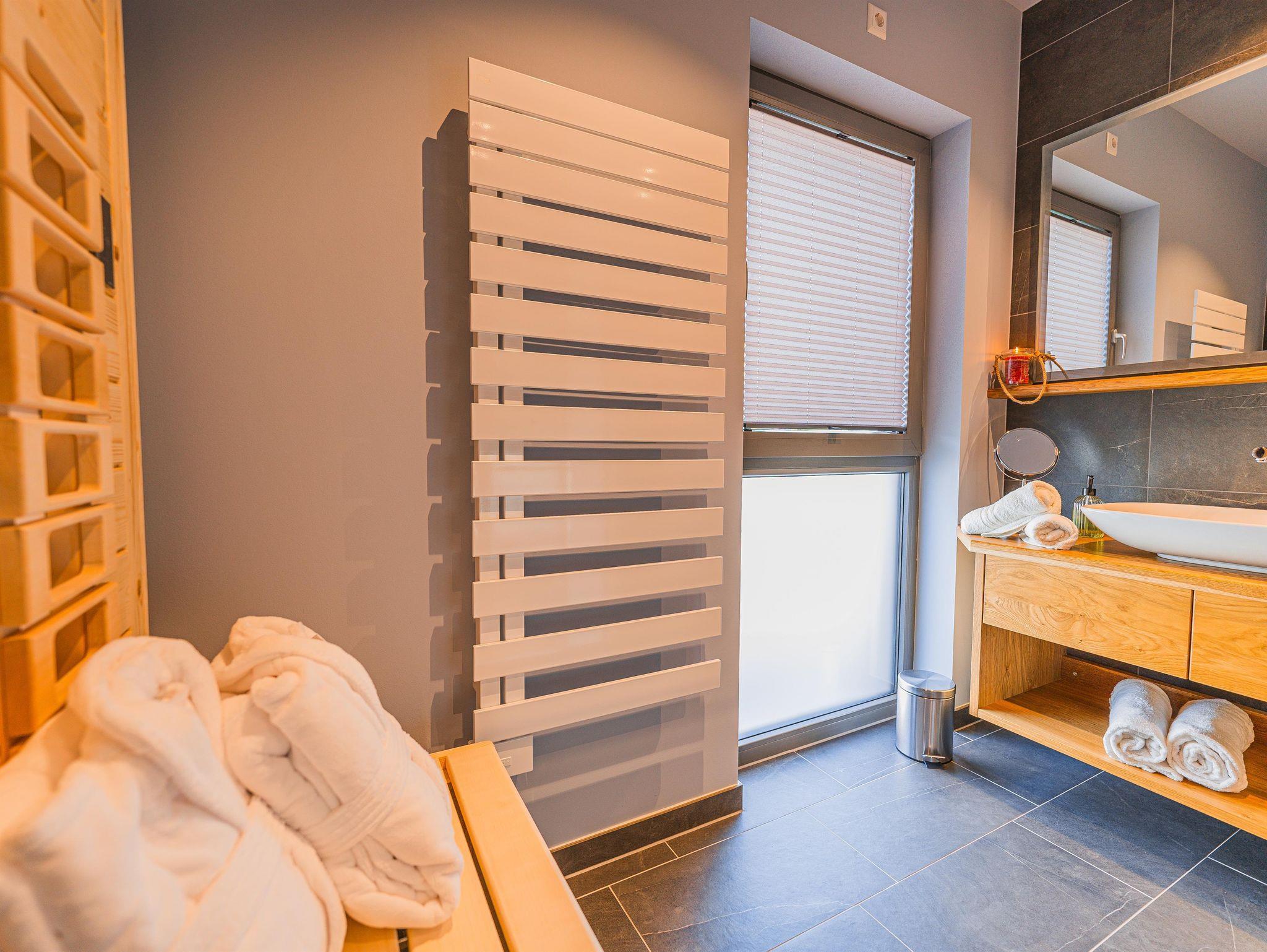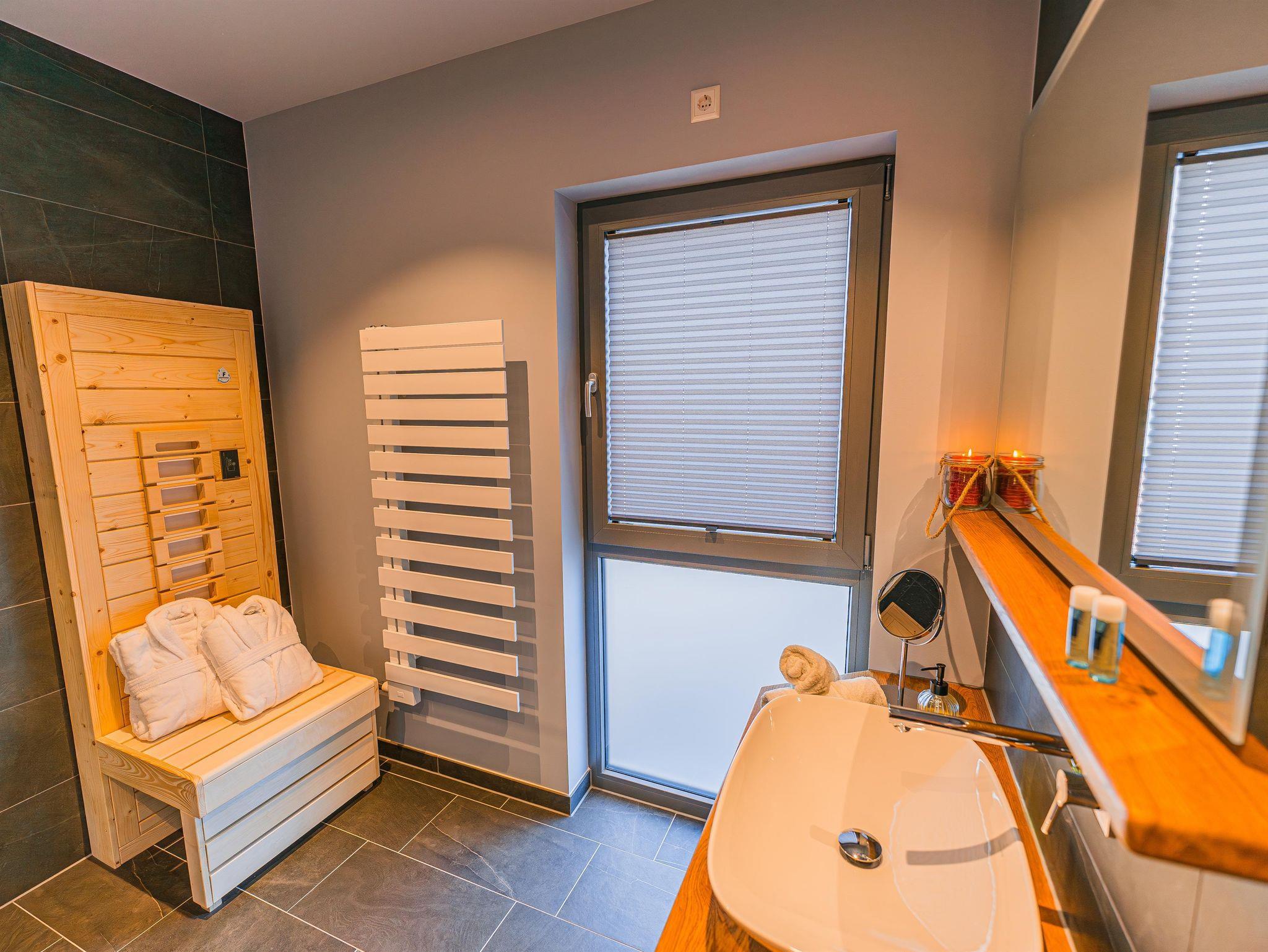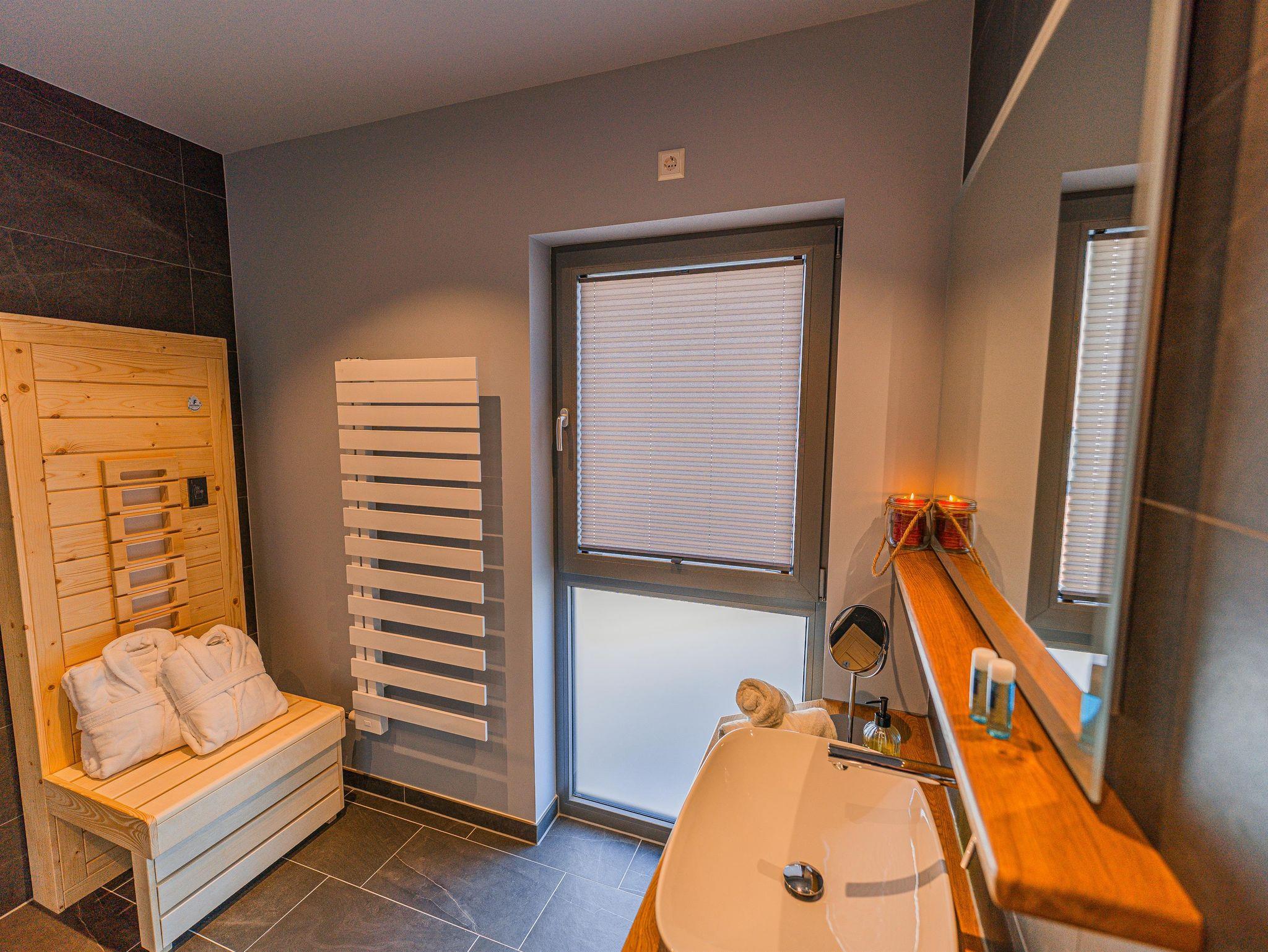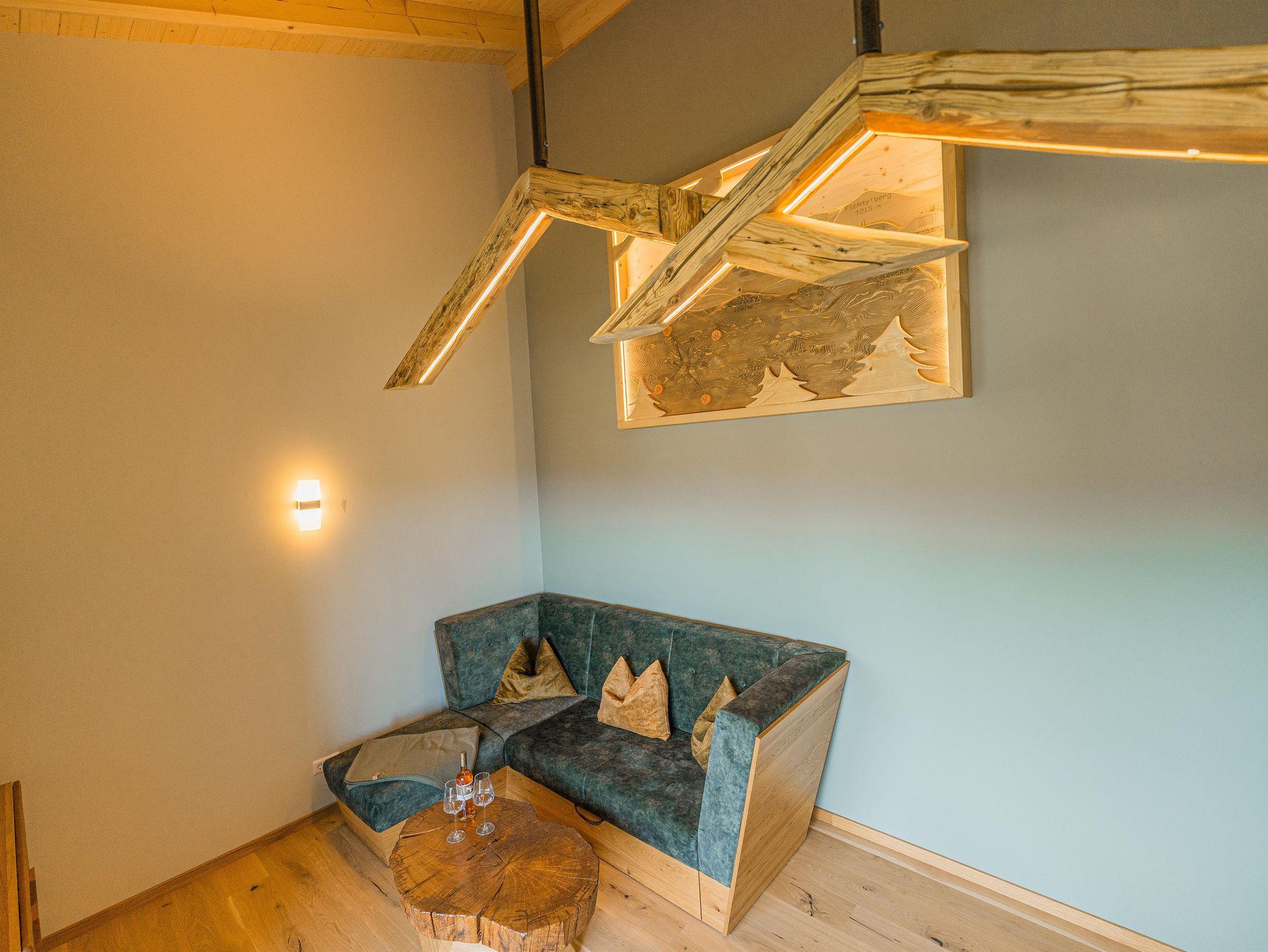 Noch mehr Entspannung findest du in einer der 3 privaten Biosaunas in den großen Wohnungen oder im separaten Erzalmhaus im Wellnessbereich Stollengrotte mit gemütlichem Saunabereich, eigenem Ruheraum und Außenbereich.