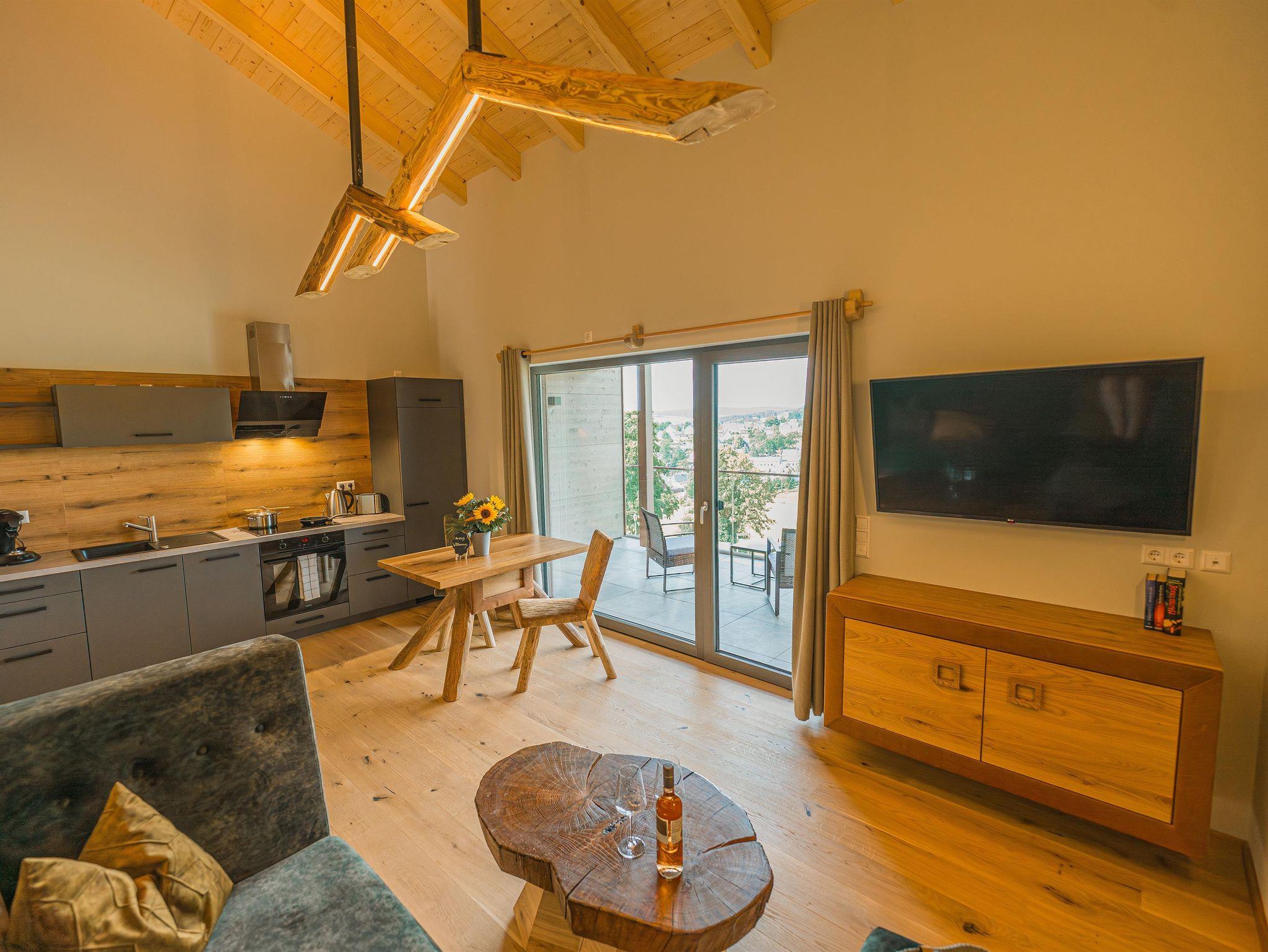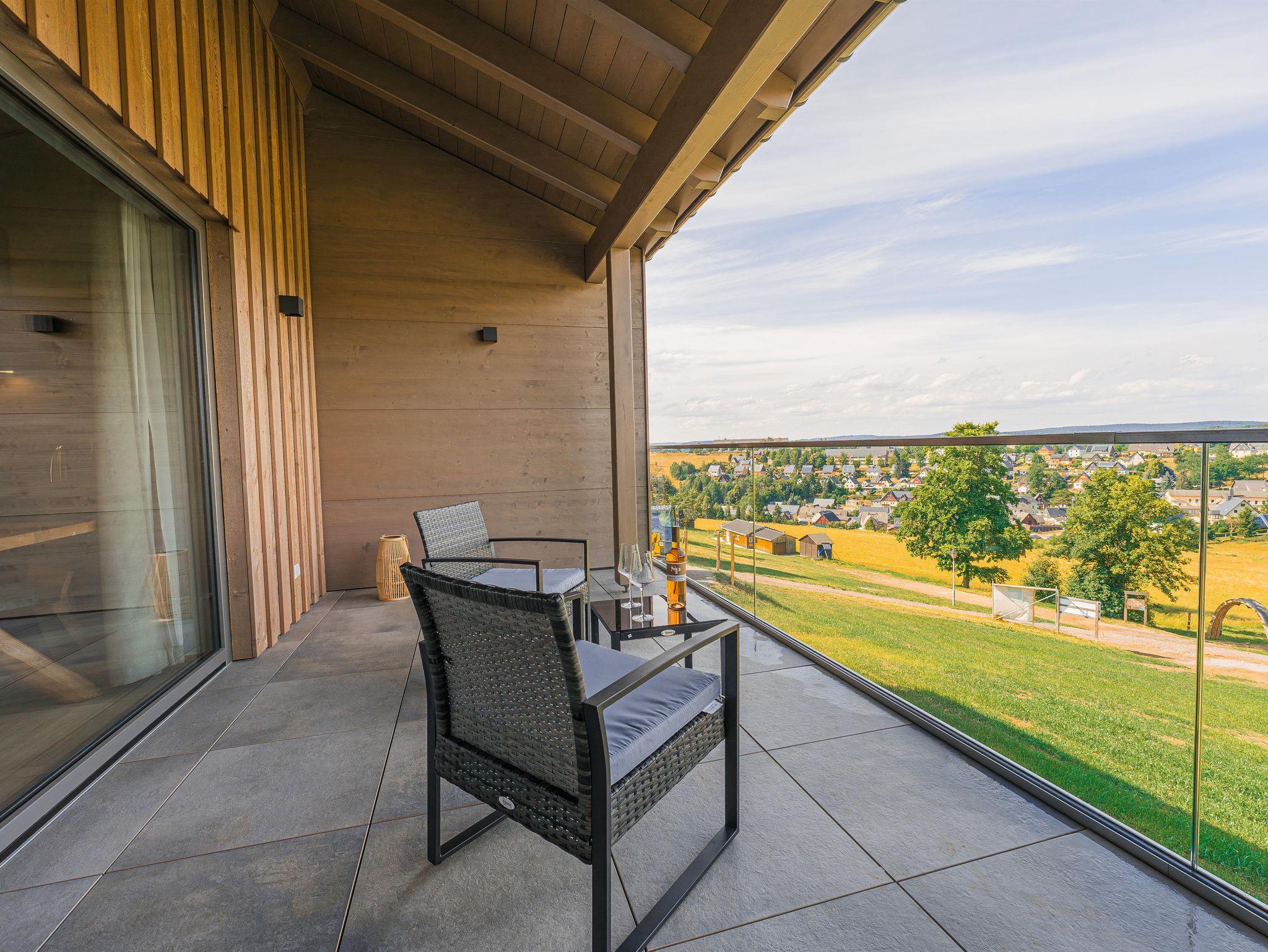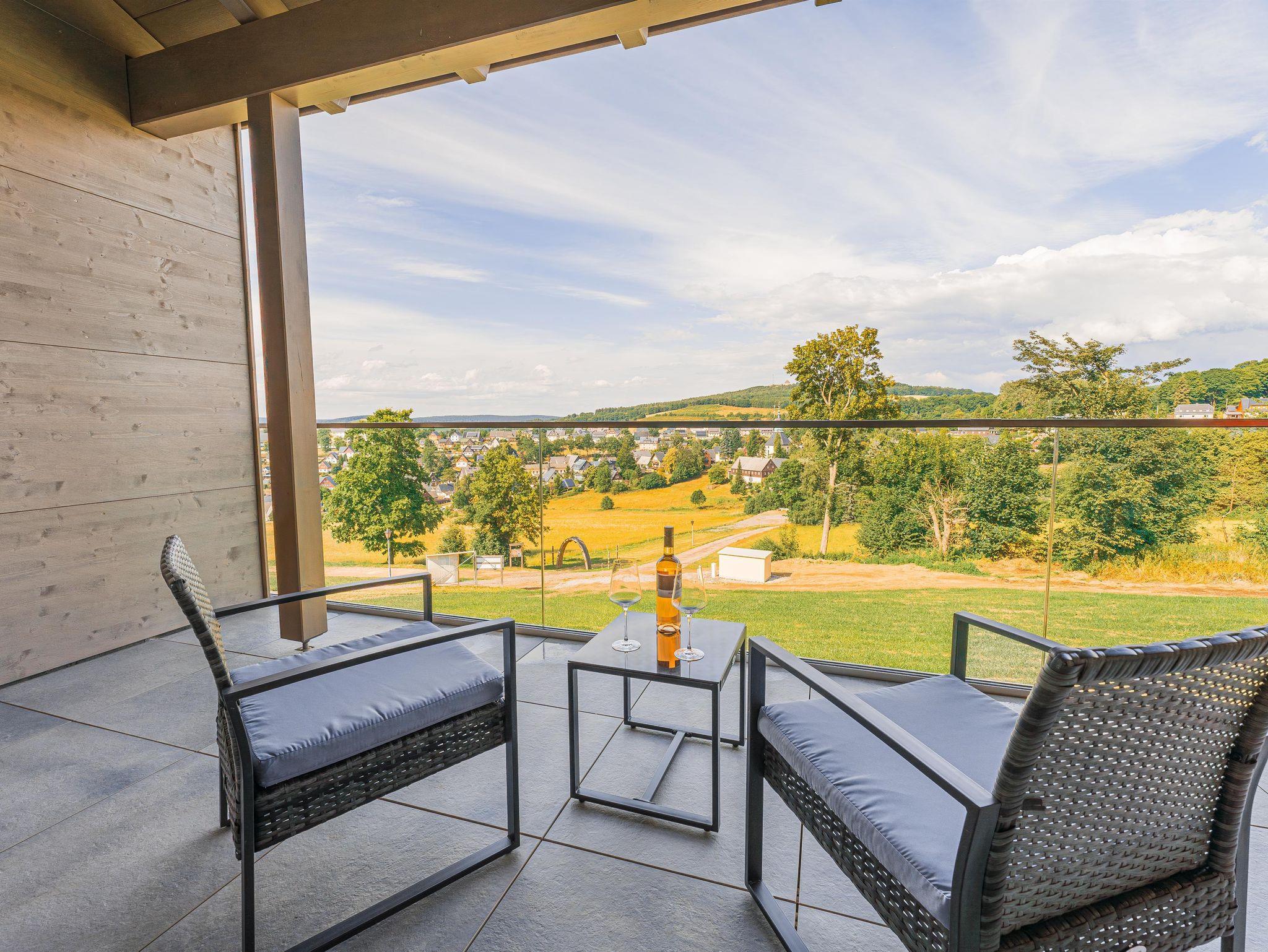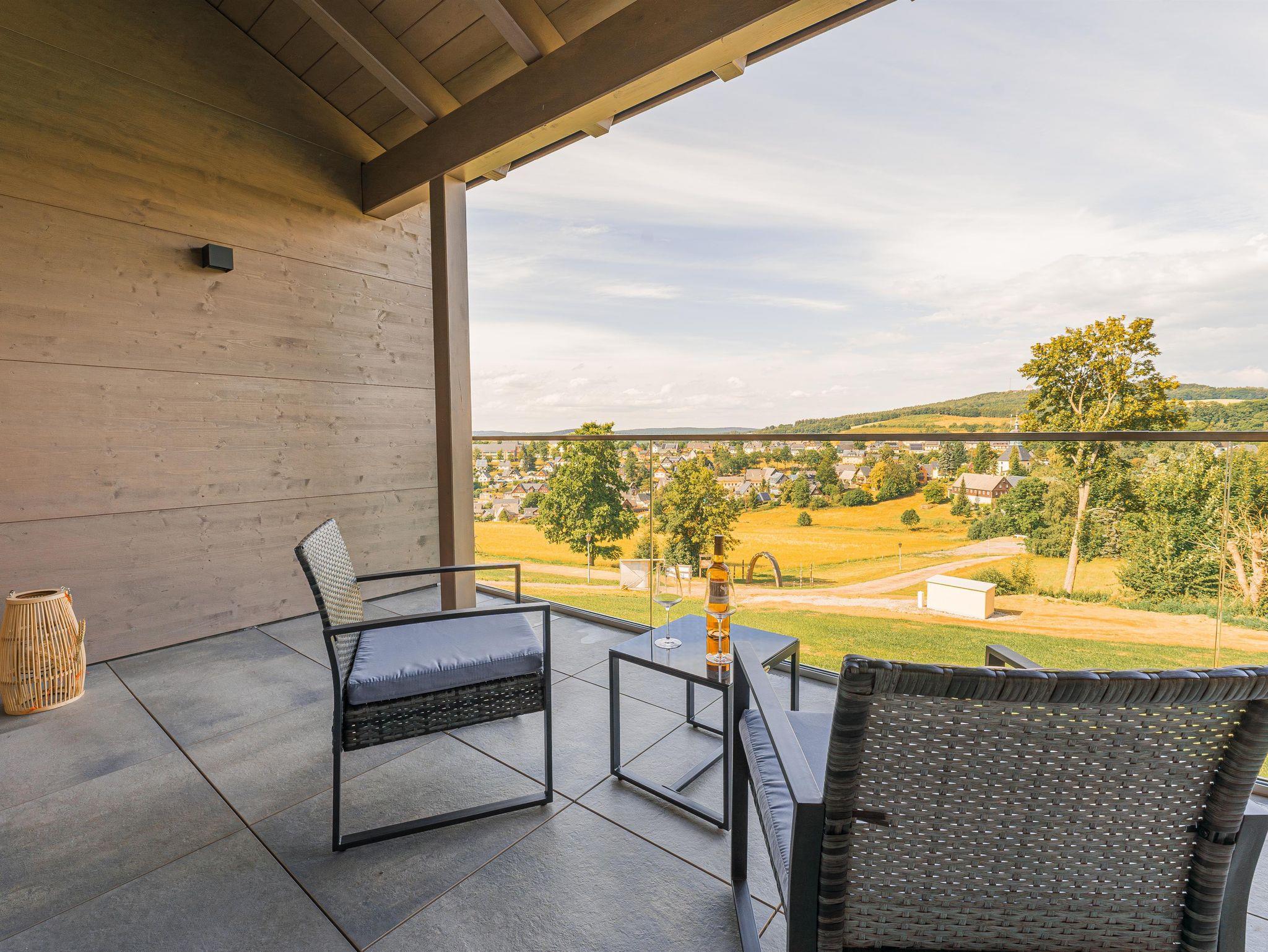Der eigene Balkon lädt zur Panoramasicht über Seiffen ein.