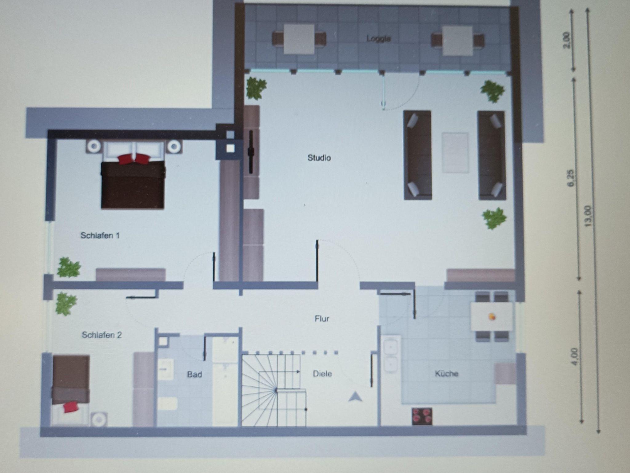 2 Schlafzimmer, Studio, Küche, Badezimmer