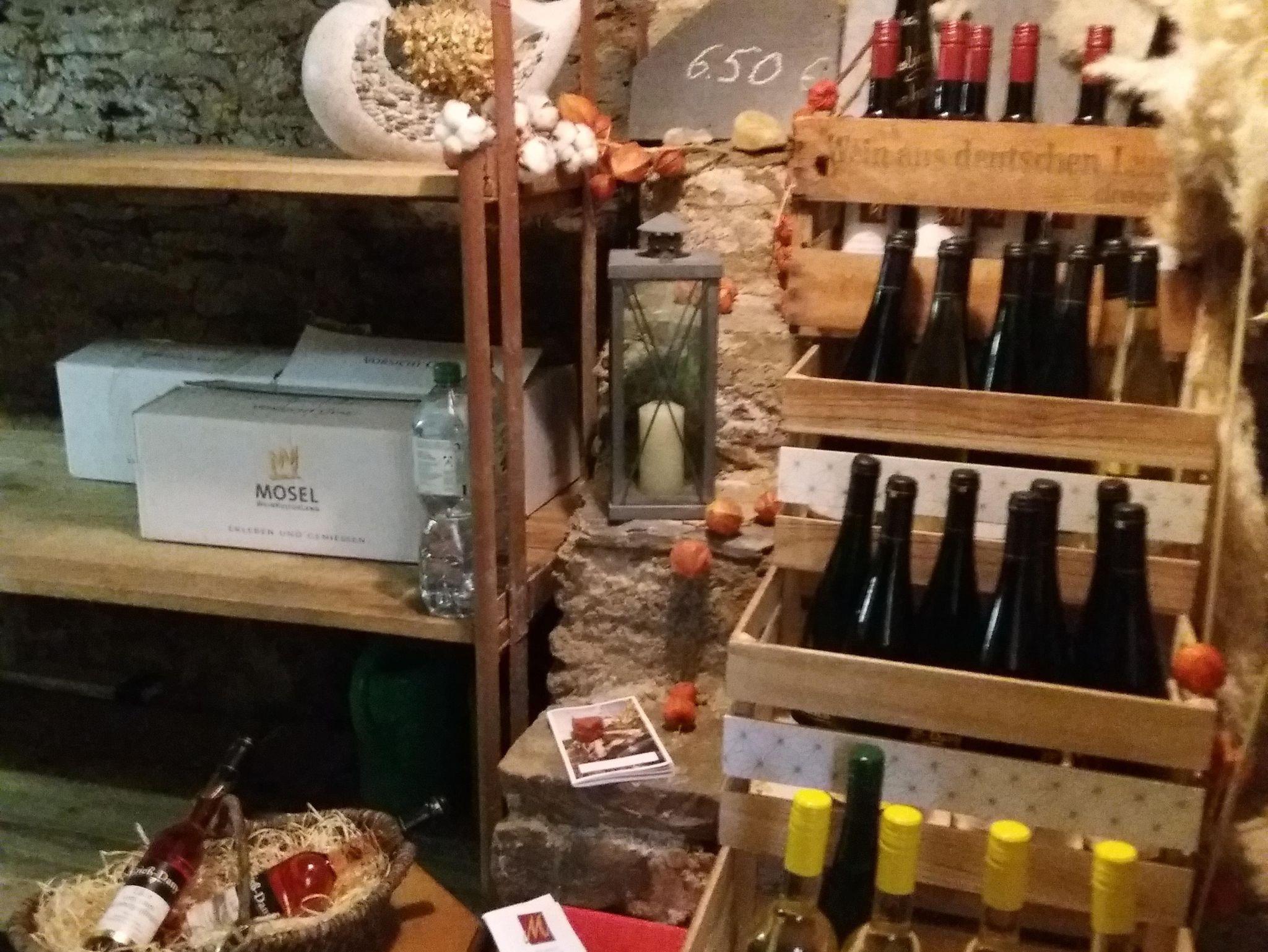 Ein kleines regionales Weinangebot haben wir für Sie in unserem alten Moselkeller zur Verkostung bereit gestellt. (gegen Aufpreis)