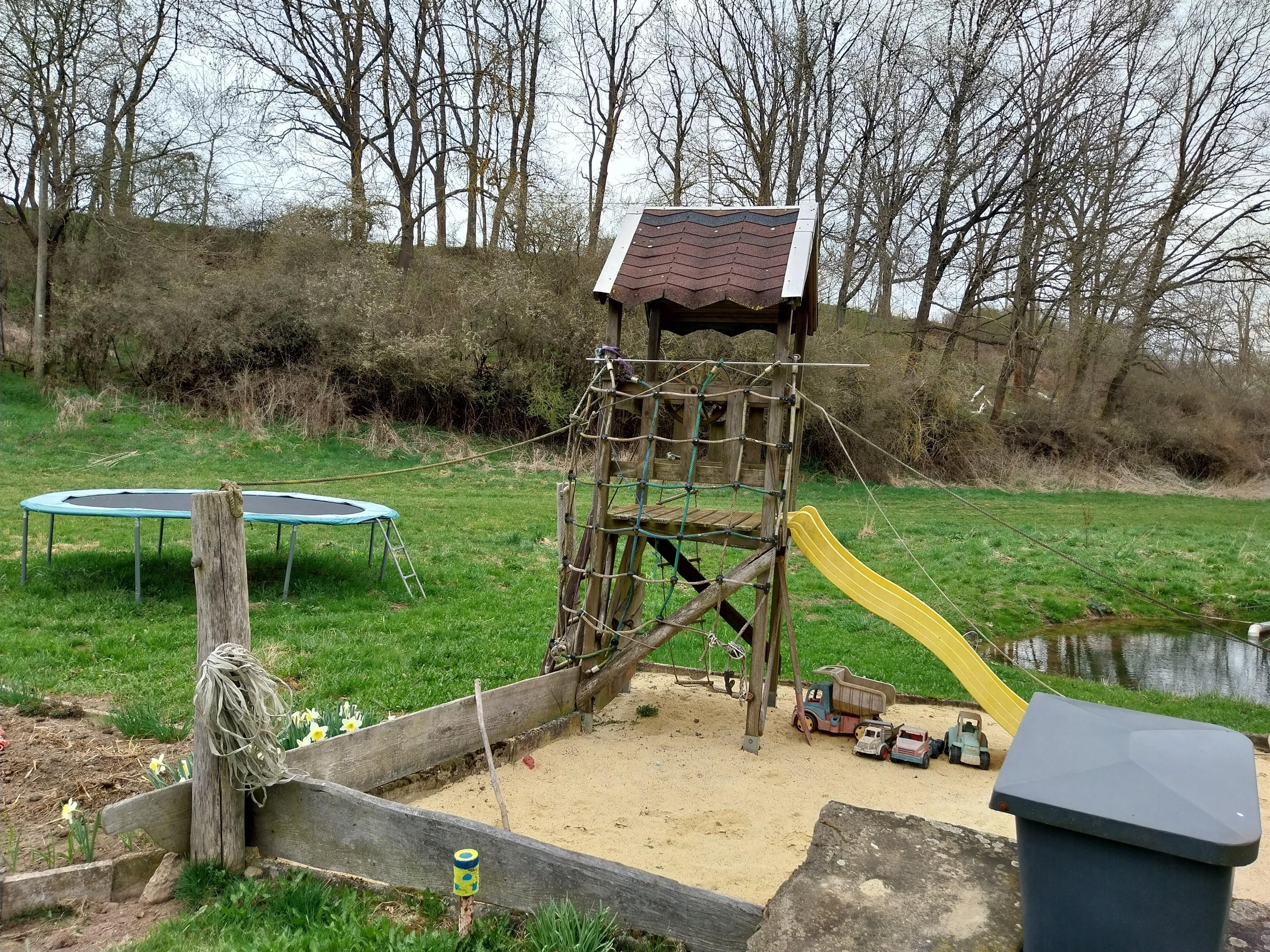 Die Dusche und das WC befinden sich auf unserem Hofgelände. Dies ist ca. 150 m vom Wohnwagen entfernt.