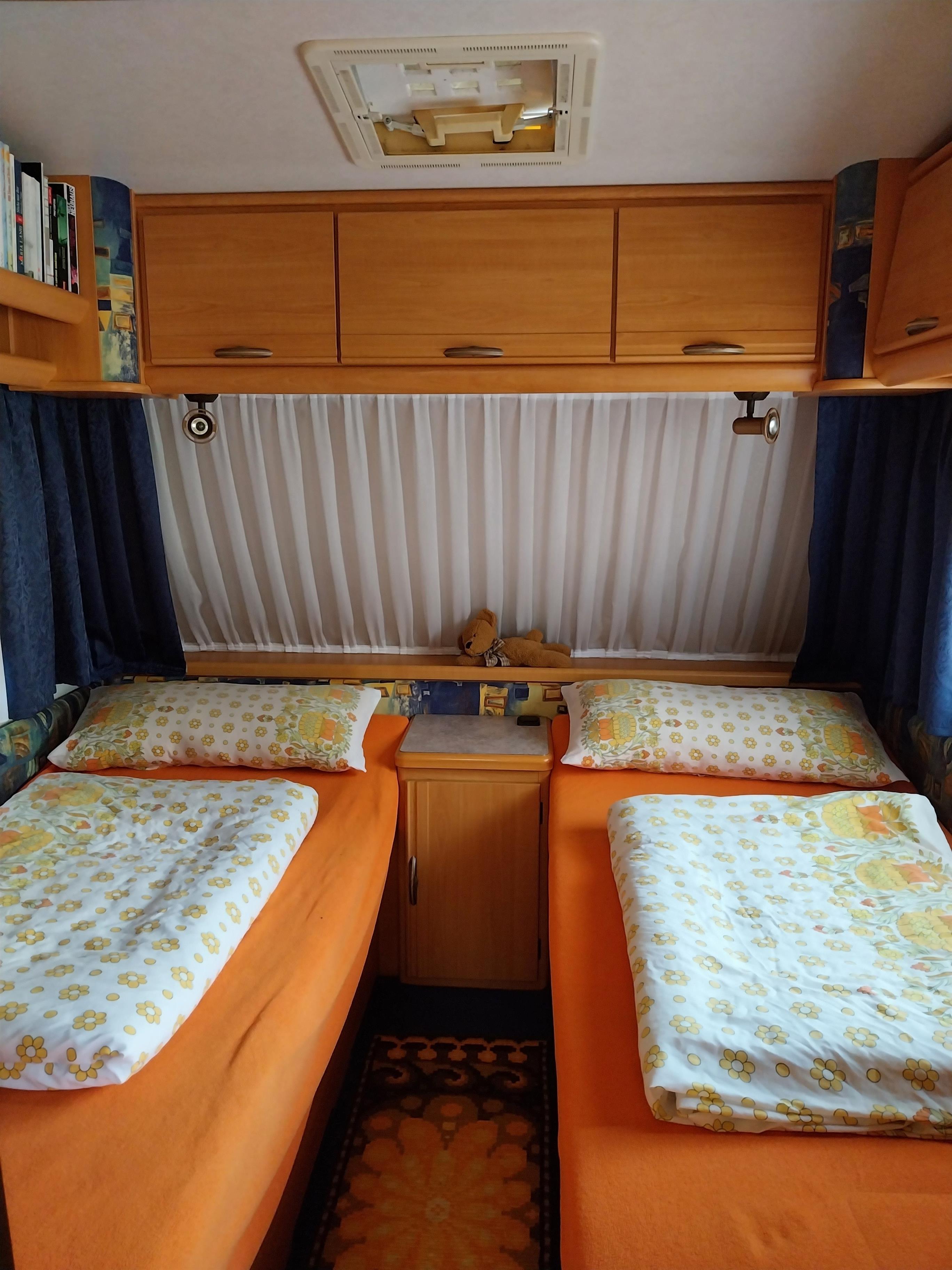 Die Wohnwagen Frieder und Karl stehen ungefähr 200 m in Sichtweite auseinander.