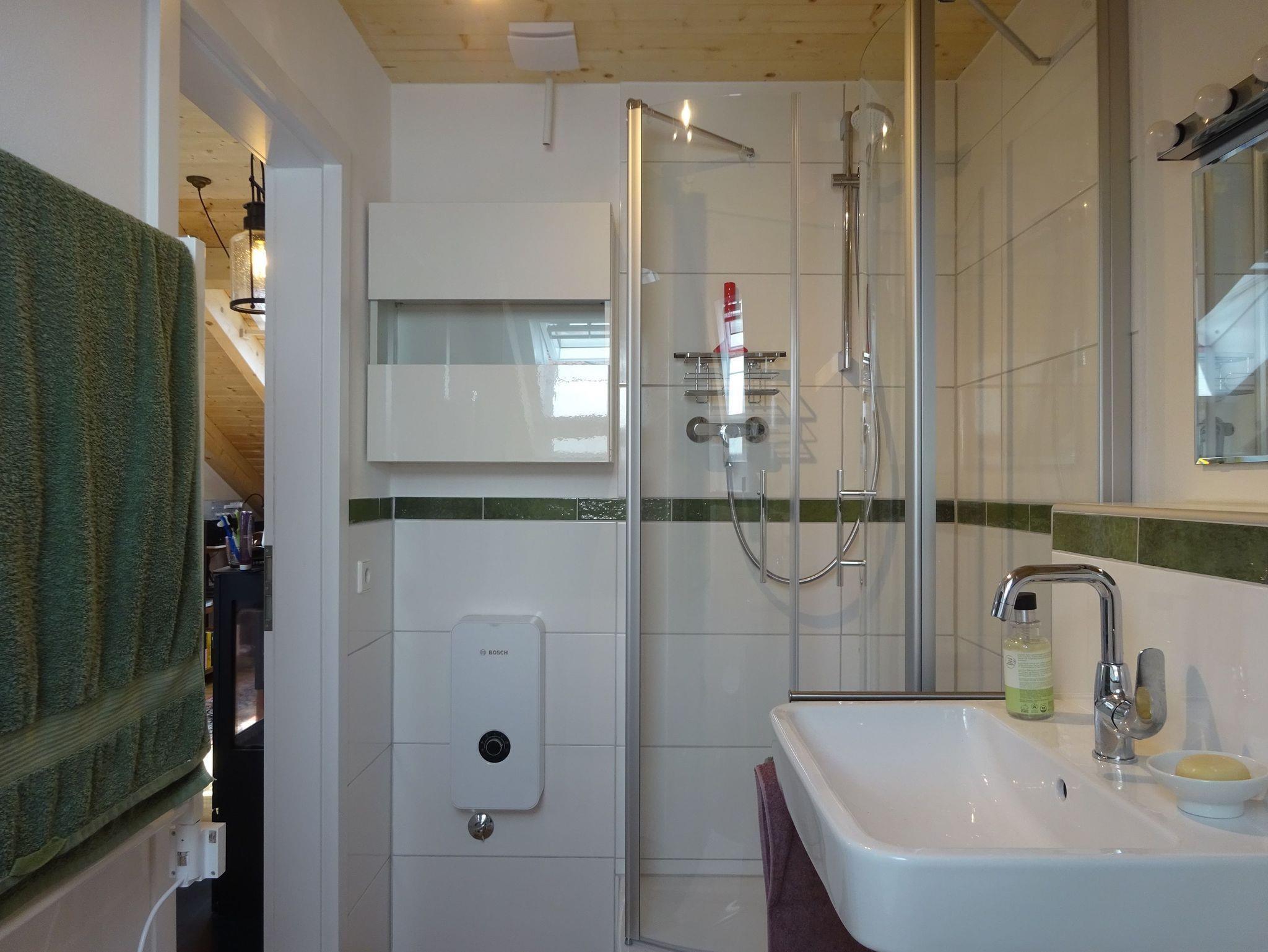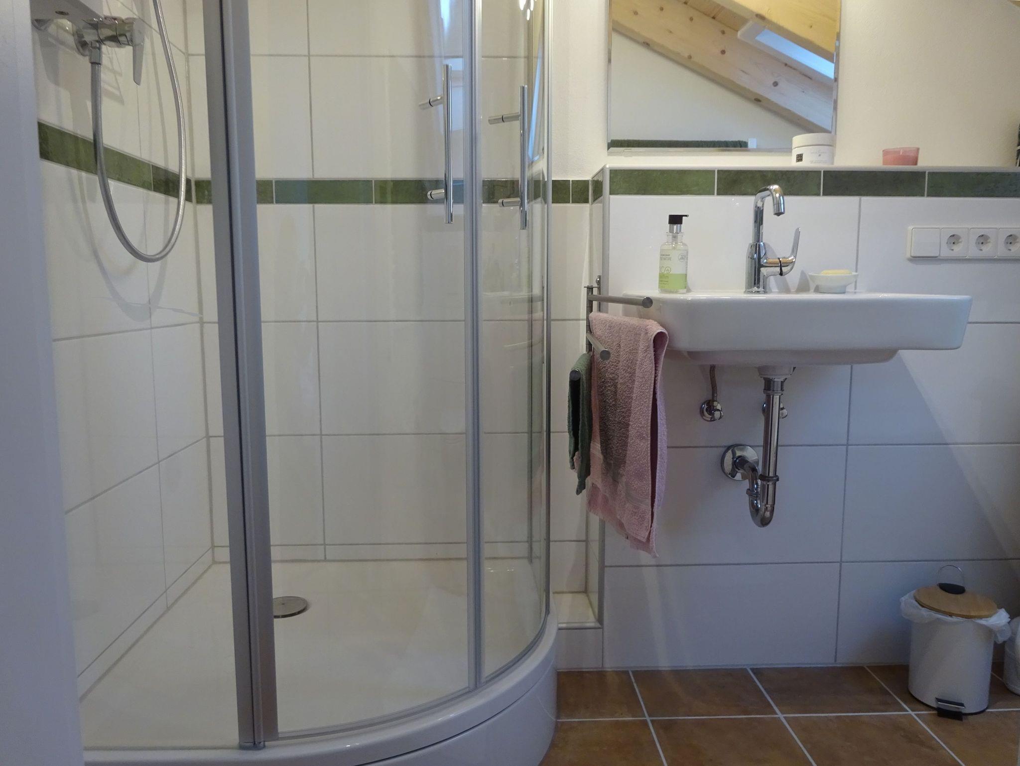 Das separate Tageslichtbad mit Dusche bietet frische Handtücher, Bettwäsche ist ebenfalls inklusive.