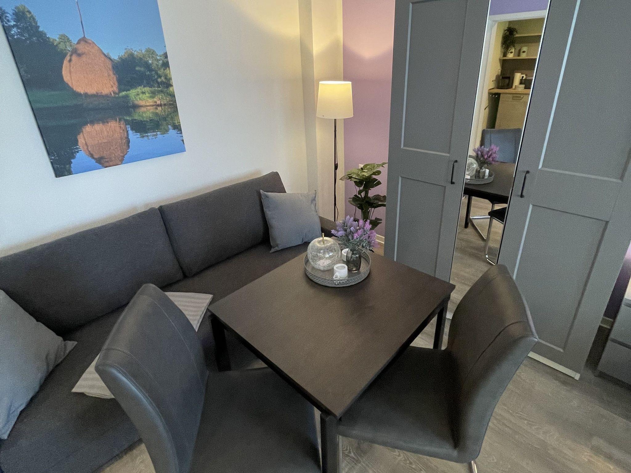 Es erwartet Sie eine vollausgestattete komfortable 50 m² Wohnung mit einem Parkpaltz direkt im Hausgarten.