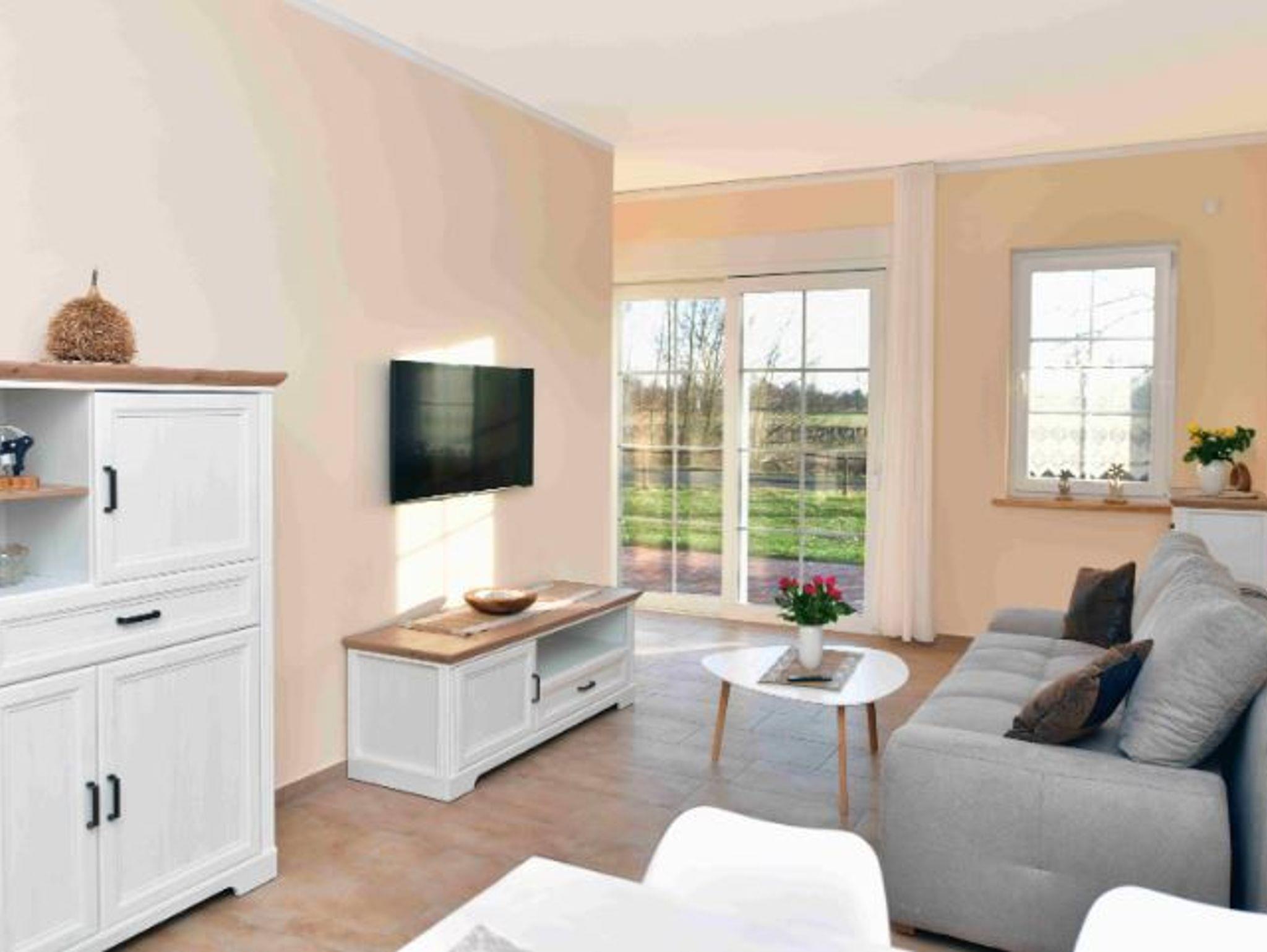 Die Ferienwohnung verfügt über einen komfortablen Wohn-Ess-Bereich, Küche, zwei Schlafzimmer, Bad, TV und Radio. Die Küche bietet jeglichen Komfort, zum Beispiel Elektroherd mit Kochfeld, Mikrowelle, Kaffeemaschine, Kühlschrank und Geschirrspüler. Die Aussicht kann man auf der Terrasse genießen.
