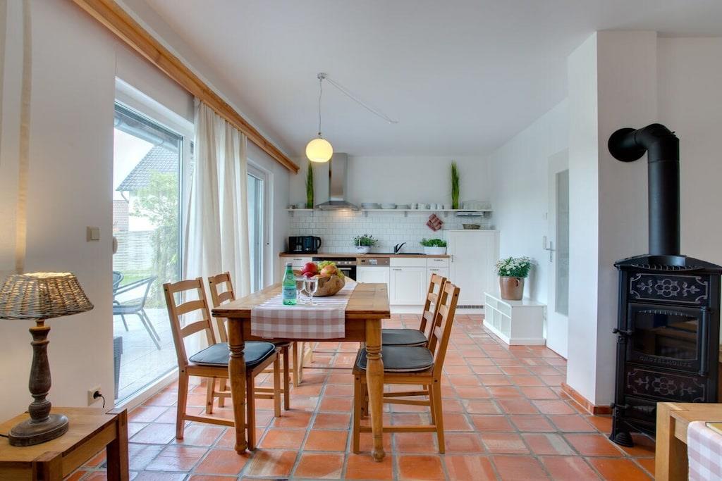 Parterre: (Wohn/Esszimmer(, , Kochnische, Liegewiese, TV, TV, Esstisch, Kaminofen, Radio, Stereoanlage, Kochplatte, Wasserkocher, Toaster, Kochherd, Kaffeemaschine, Backofen, Spülmaschine, Kühlschrank, Tiefkühlschrank, Heizung, Fliegenfenster), Schlafzimmer(, , Doppelbett, TV, TV, Heizung), Badezimmer(, Toilette, Dusche, Waschbecken, Heizung, Föhn)) In der 1. Etage: (Schlafzimmer(, , Doppelbett, TV, Radio, Heizung), Schlafzimmer(, Doppelbett, TV, TV, Heizung), Badezimmer(Toilette, Dusche, Waschbecken, Heizung, Föhn)) , Internet, Internet, Heizung, Terrasse(, Zentraler Grill, Gartenmöbel, Liegen), Parkplatz, Trockenschrank