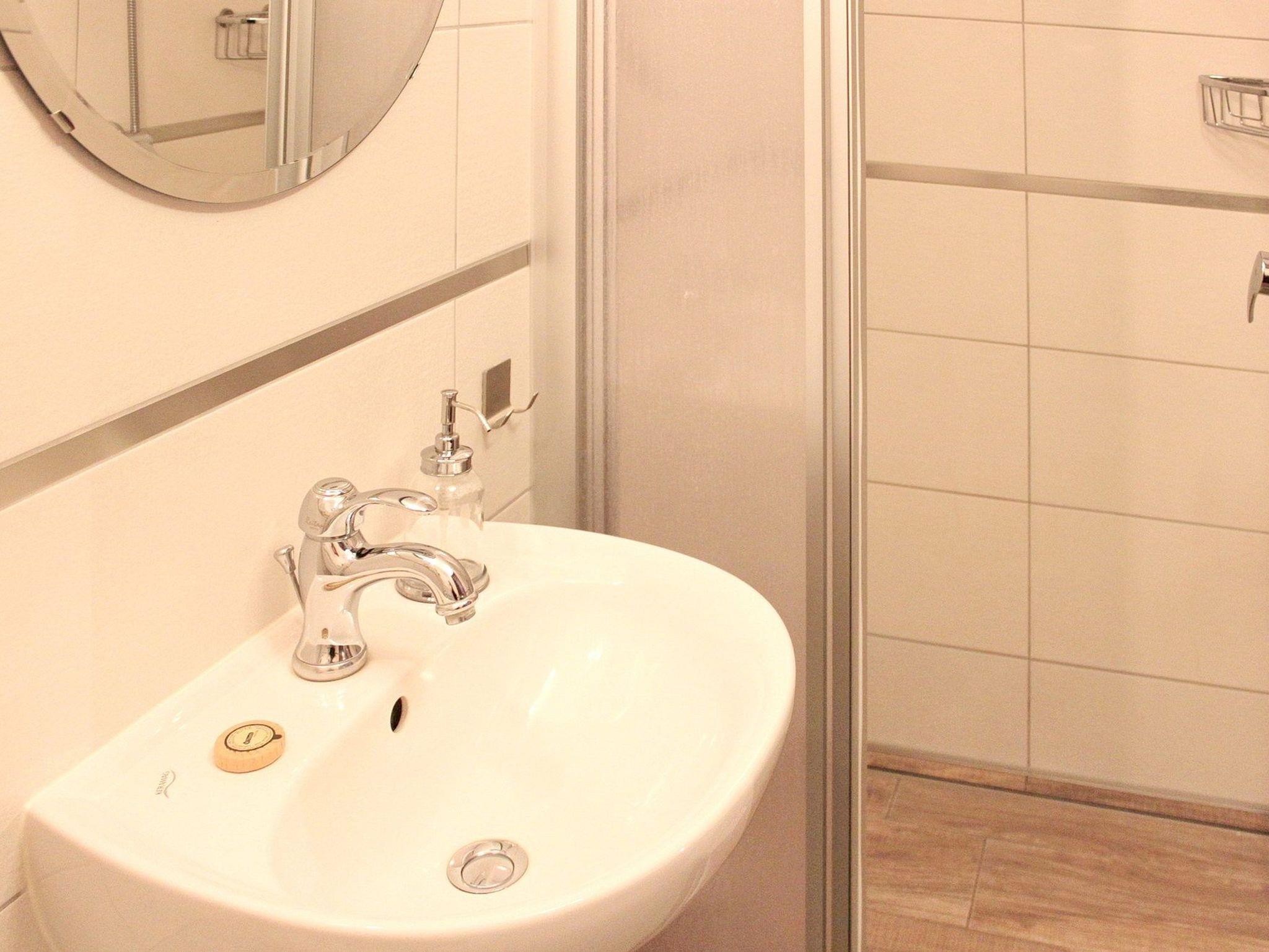 Die 40 qm große zwei-Raum-Wohnung ist ideal ausgestattet für zwei Personen. In der separaten Küche befindet sich eine Einbauküche und ein Essbereich der Platz für zwei Personen bietet. Die Küche ist ausgestattet mit einem zwei-Plattenherd, einer Spüle, einem Kühlschrank mit Gefrierfach, einem Wasserkocher, einem Toaster und einer Kaffeemaschine. Der Schlafraum ist von der Küche begehbar und bietet neben einem großzügigen Doppelbett (1,80 x 2,00m) auch eine Bank zum Ablegen der Kleidung. Das Wohnzimmer der Ferienwohnung ist eingerichtet mit einem Kleiderschrank mit viel Stauraum, einem Esstisch mit vier Sitzplätzen und einer gemütlichen Couch. Zur Unterhaltung bietet das Wohnzimmer einen Flachbild TV und eine Stereoanlage. Das moderne Bad ist mit einer ebenerdigen Dusche und einer Toilette ausgestattet. Über dem Waschbecken hängt ein Spiegel. Des Weiteren sind ein Föhn sowie Handtuchtrockner vorhanden. Aus Rücksicht auf andere Gäste ist das Rauchen in der Wohnung nicht gestattet. WLAN ist kostenfrei.