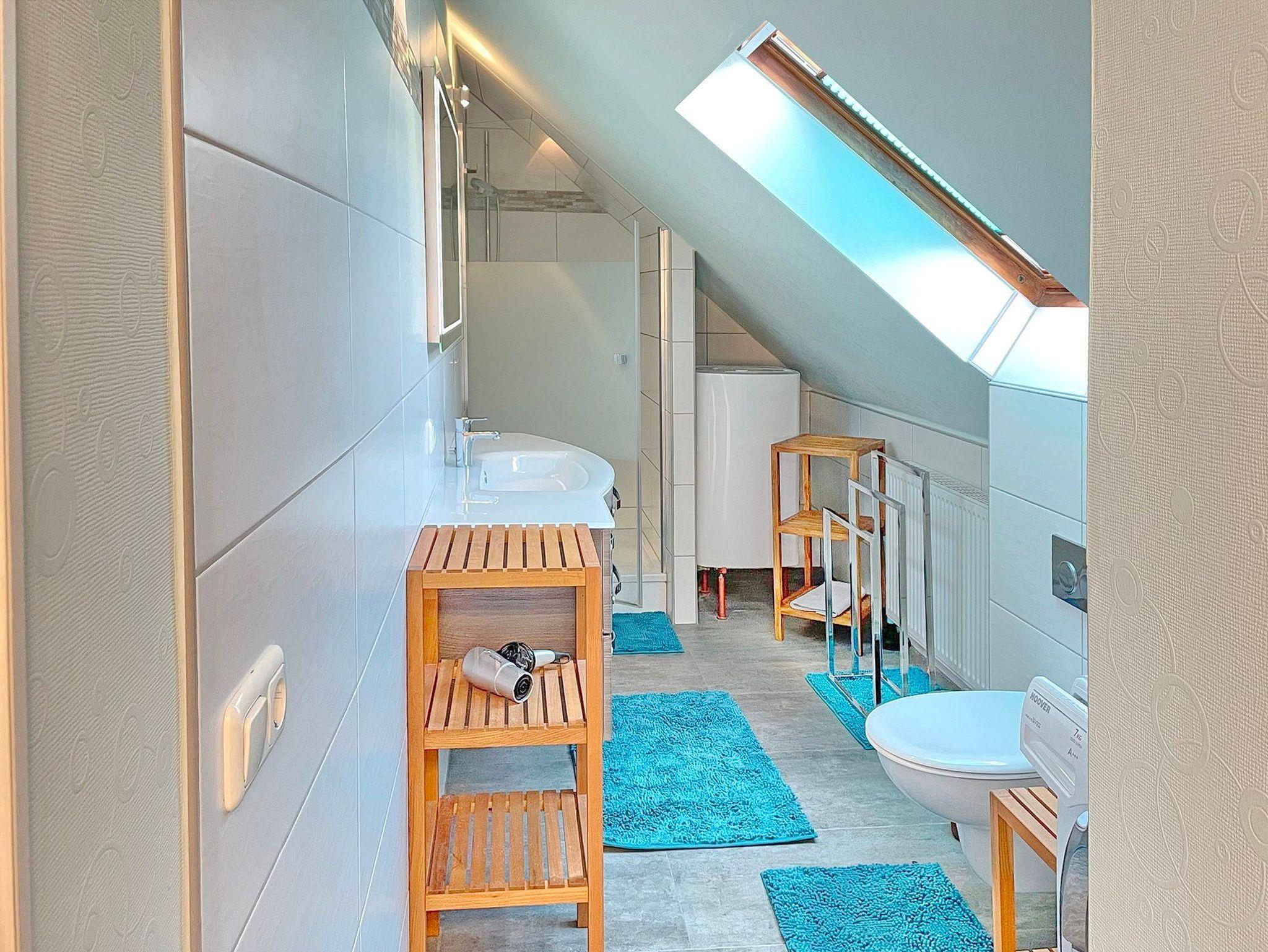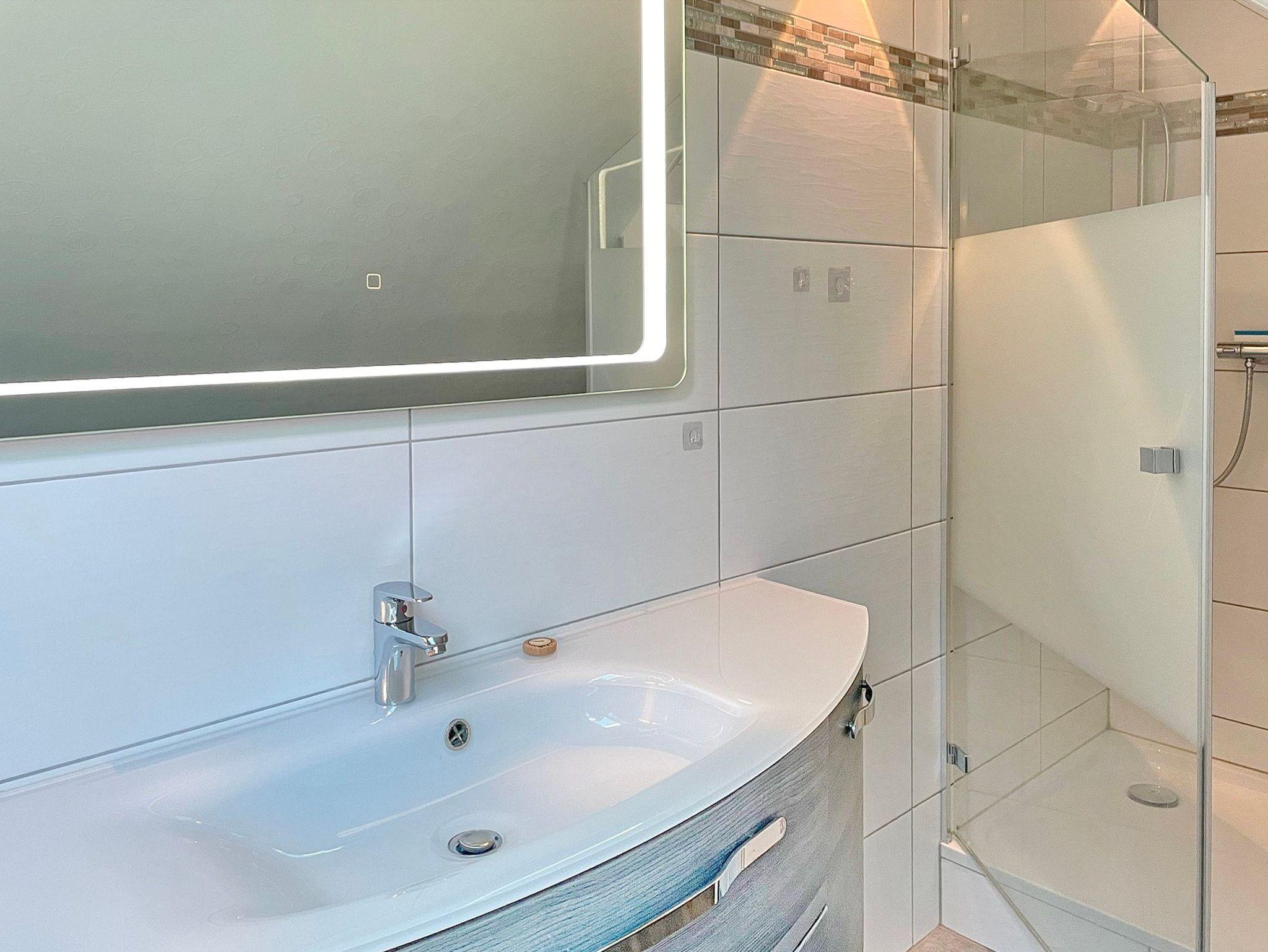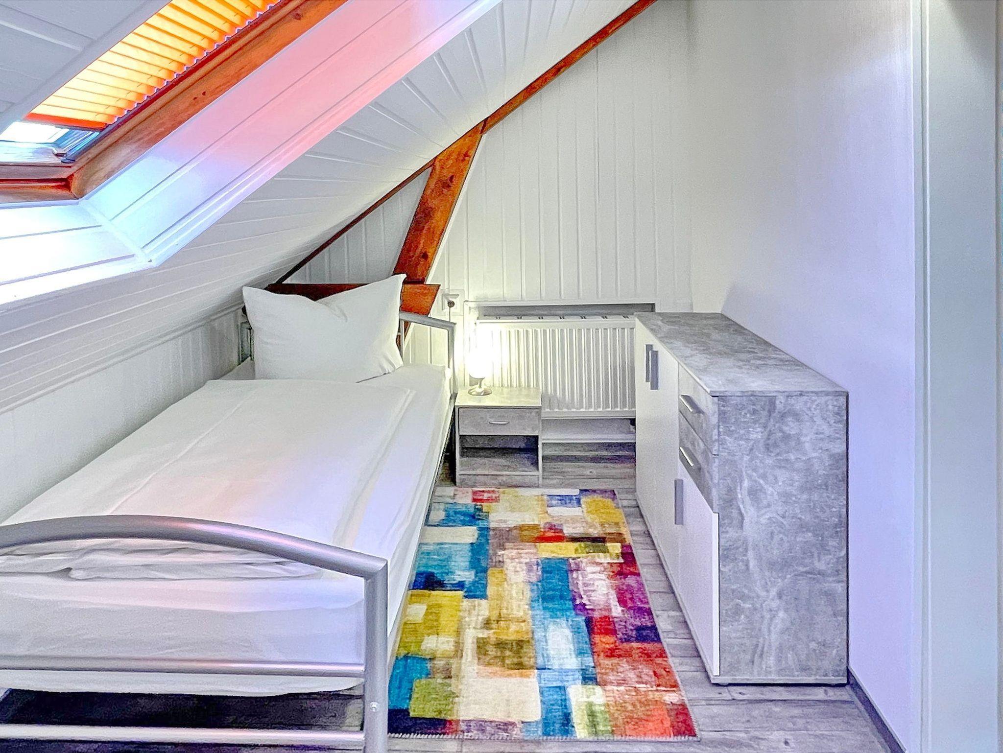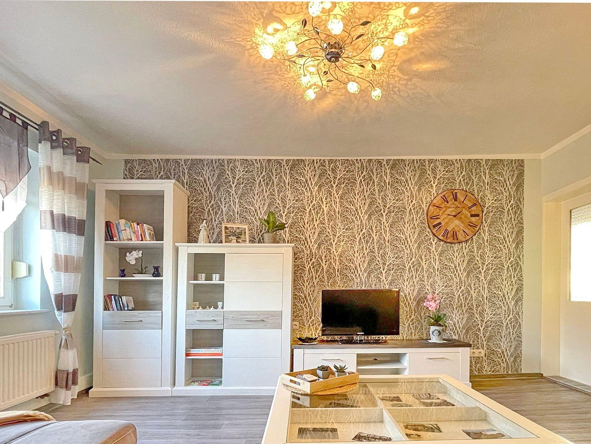 Die ca. 61 qm große Vier-Raum-Wohnung ist ideal ausgestattet für eine vierköpfige Familie. In der voll ausgestatteten Küche befindet sich ein Esstisch der ausreichend Platz für 4 Personen bietet. Diese moderne Einbauküche, bietet Ihnen ein 4 Platten Cerankochfeld, ein Backofen, ein Geschirrspüler, ein Kühlschrank mit Gefrierfach, ein Wasserkocher, ein Toaster und eine Kaffeemaschine. Von dort aus gelangen Sie ins Schlafzimmer mit einem großzügigen Doppelbett (1,80 x 2,00 m), einem großen Kleiderschrank, einer Kommode mit Flachbild-TV. Das Kinderzimmer ist diesem Raum angeschlossen mit einer Trennwand und Tür. Es hat zwei extra stehende Einzelbetten und genug Stauraum für Spielsachen. Das Wohnzimmer der Ferienwohnung ist mit einer XXL gemütlichen Couch ausgestattet, es ist sehr geräumig. Zur Unterhaltung bietet das Wohnzimmer einen Flachbild TV. Im Badezimmer befinden sich eine Dusche, ein WC, Waschtisch mit einem beleuchteten Spiegel und einer Waschmaschine zur kostenfreien Nutzung. Des Weiteren sind ein Föhn sowie Handtuchtrockner vorhanden.